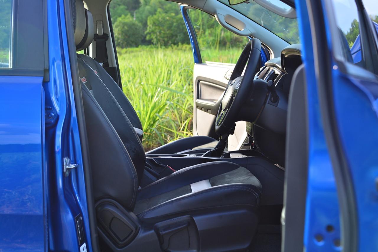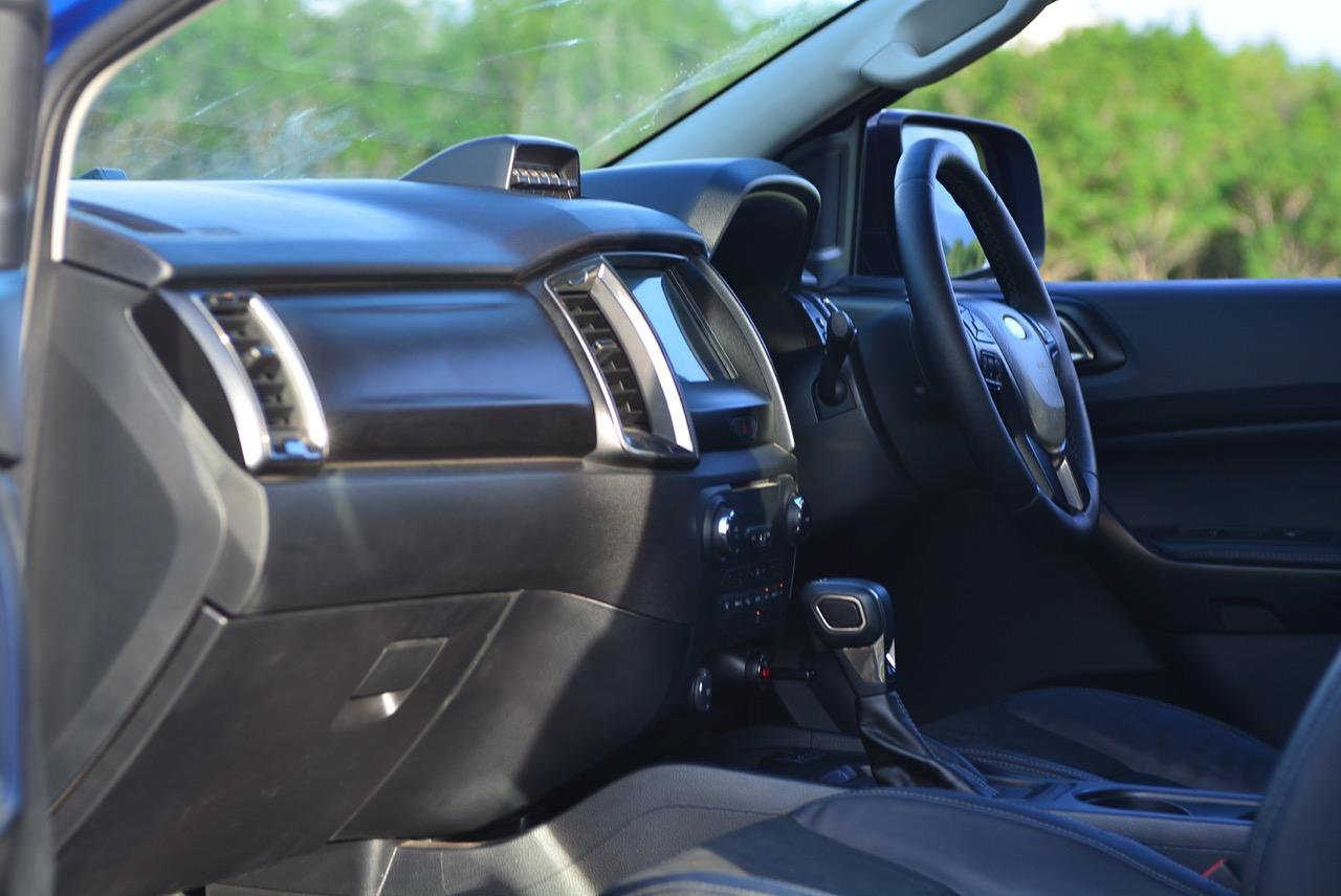 ห้องโดยสาร FX4 Max จากบันไดข้างโลหะสีดำแบบออฟโรดพร้อมผิวกันลื่น ชุดผ้ายางปูพื้นภายในห้องโดยสาร รองรับการใช้งานแบบออฟโรดโดยเฉพาะ เบาะนั่งพิเศษเฉพาะ FX4 Max ใช้วัสดุหนังแท้ หนัง Alcantara และหนังสังเคราะห์ ที่แตกต่างจากรุ่นอื่น การปักสัญลักษณ์ FX4 Max ที่เป็นเอกลักษณ์บนเบาะคู่หน้า แป้นเหยียบคันเร่งสไตล์สปอร์ตแบบเดียวกับ Raptor พวงมาลัยหุ้มด้วยหนังสีดำ สีเดียวกับลวดลายตกแต่งแผงคอนโซลและขอบประตู