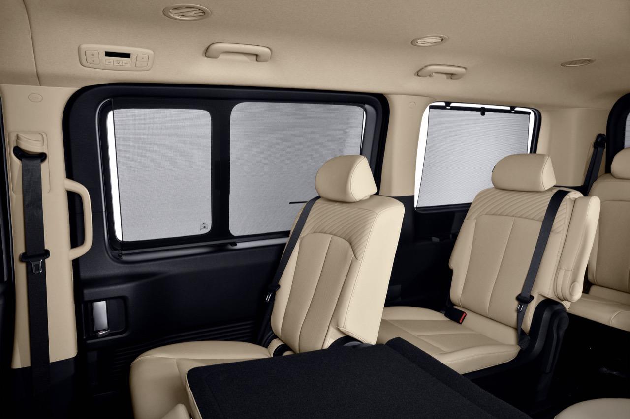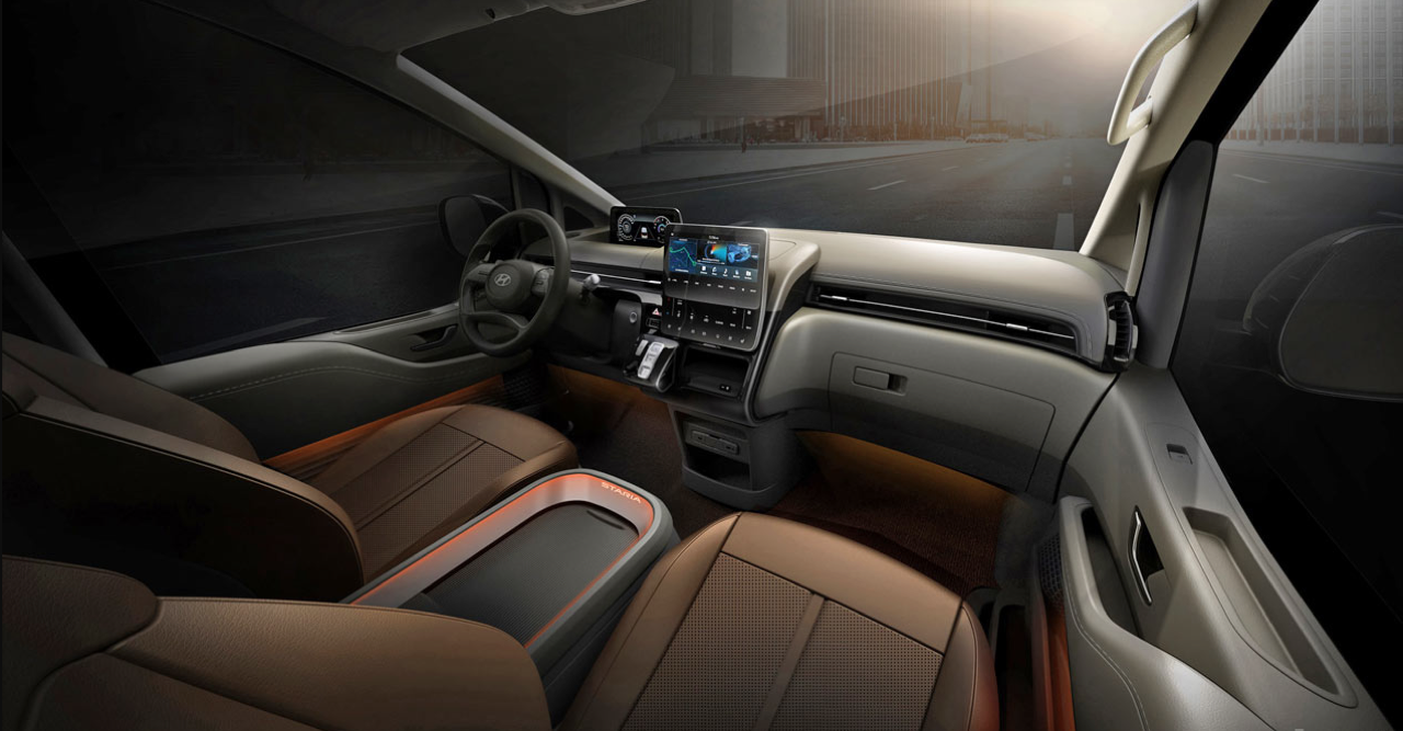 ภายในห้องโดยสารคือจุดขายที่ Hyundai พยายามปรับให้ตรงกับความต้องการของลูกค้า โดยให้ความสำคัญกับทัศนวิสัยของคนขับและความสะดวกสบายของผู้โดยสาร เบาะและอุปกรณ์ต่างๆ รวมถึงบานประตูแบบไฟฟ้า เป็นคุณสมบัติของรถยนต์อเนกประสงค์ที่เคยมีอยู่ในรุ่น H1 แต่มีการปรับปรุงให้ทันสมัยมากกว่าเดิม การออกแบบ beltline ที่ต่ำกระจกแบบพาโนรามิค ทำให้รู้สึกเปิดกว้างขณะโดยสารอยู่ในรถ เบาะคนขับปรับไฟฟ้า 12 ทิศทาง บริเวณคอทพิทของผู้ขับ จัดอุปกรณ์ไฮเทค เปลี่ยนมาตรวัดแบบเข็มมาเป็นมาตรวัดแบบจอภาพ TFT ส่วนจอภาพมอนิเตอร์กลาง ติดตั้งหน้าจอสั่งงานด้วยระบบสัมผัส ขนาด 8 นิ้ว บริเวณคอนโซลกลาง ลูกเล่นใหม่ที่น่าใช้งานก็คือ สวิตช์เปลี่ยนเกียร์ระบบไฟฟ้า มาตรวัดความเร็ว รอบเครื่องยนต์ และการแสดงผลข้อมูลการขับขี่ ผ่านจอภาพดิจิทัลขนาด 10.25 นิ้ว ติดตั้งบริเวณด้านบนของแผงคอนโซล จุดยึดเบาะเด็กบริเวณแถวที่สอง Staria ไม่มีซุ้มคันเกียร์ ใช้การกดปุ่ม P/N/D เพื่อขับเคลื่อนหรือจอด พร้อมแป้นเปลี่ยนเกียร์หลังพวงมาลัย Paddle Shift เบาะแถวหลังทั้งสามแถว สามารถพับราบ ใส่เบาะนอนกลายเป็นเตียงเคลื่อนที่ได้ พร้อม USB 7 ตำแหน่งรองรับการชาร์จอุปกรณ์ต่างๆ