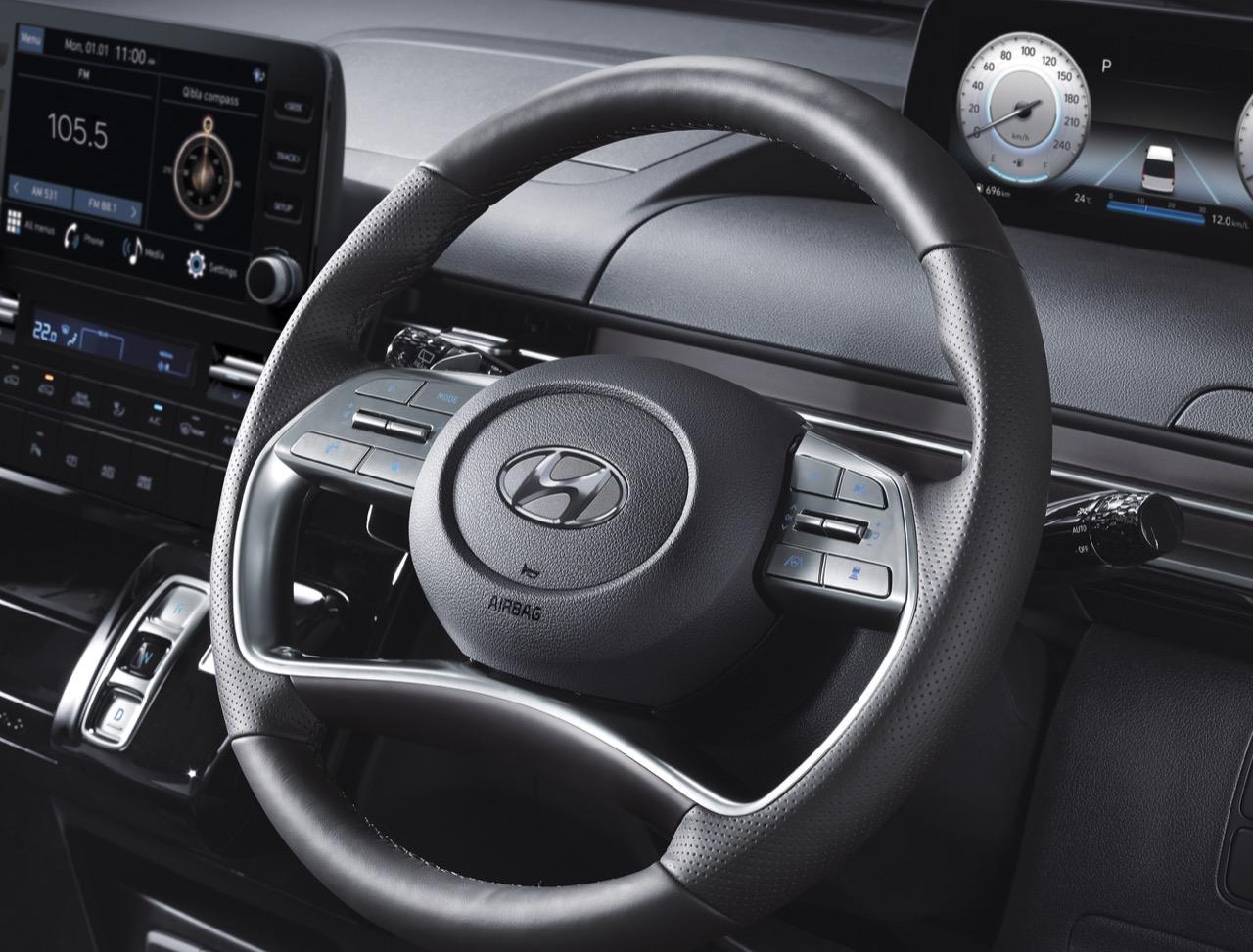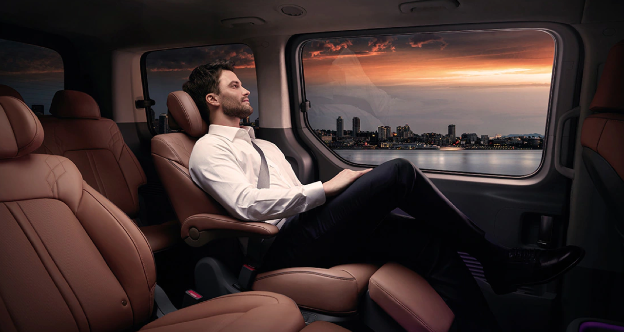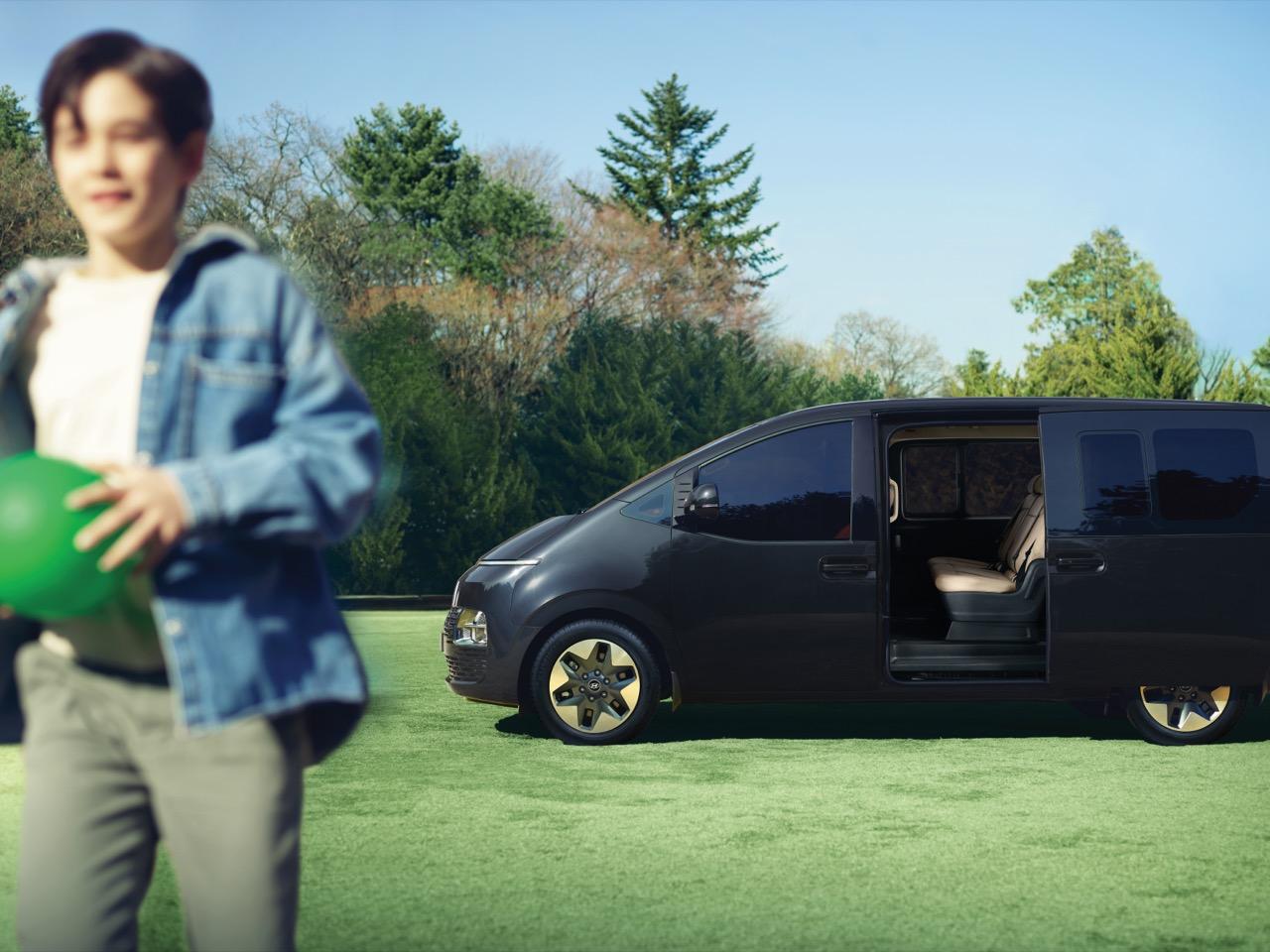 Staria ถูกออกแบบเพื่อเน้นการใช้พื้นที่ภายในห้องโดยสารอย่างเต็มที่ ความโอ่โถงของพื้นที่ภายใน เกิดขึ้นจากการใช้ฐานล้อที่มีขนาดยาวที่สุดในกลุ่มรถยนต์อเนกประสงค์ ฐานล้อยาว 3,273 มิลลิเมตร มิติขนาดตัวถัง มีความยาวถึง 5,253 มิลลิเมตร กว้าง 1,997 มิลลิเมตร สูง 1,990 มิลลิเมตร บานประตูไฟฟ้าพร้อมเซนเซอร์ ช่วยเพิ่มความสะดวกสบายขณะเข้าและออกจากรถ