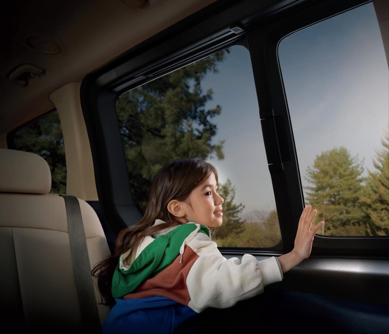 ประตูด้านข้างแบบไฟฟ้า ติดตั้งเซนเซอร์เพื่อเปิด-ปิดแบบอัตโนมัติ ฝาท้ายด้านหลังเปิด ปิด อัตโนมัติด้วยไฟฟ้า กล้องมองรอบทิศทางและจุดอับสายตา จอดิสเพลย์ขนาด 8 นิ้ว