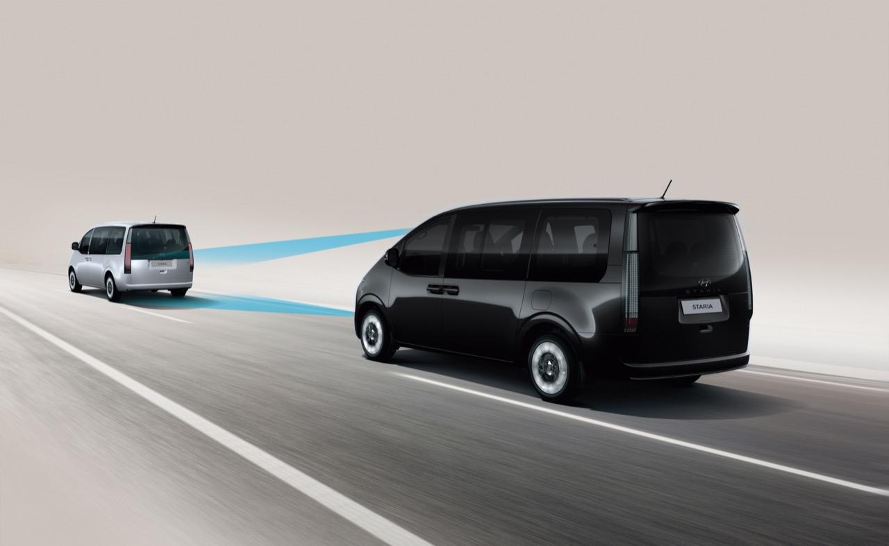 Staria ติดตั้งแอร์แบคจำนวน 6 ตำแหน่ง ทุกที่นั่งติดตั้งเข็มขัดนิรภัยแบบ 3 จุด โดยมีระบบเพิ่มความปลอดภัยในการขับขี่ เช่น