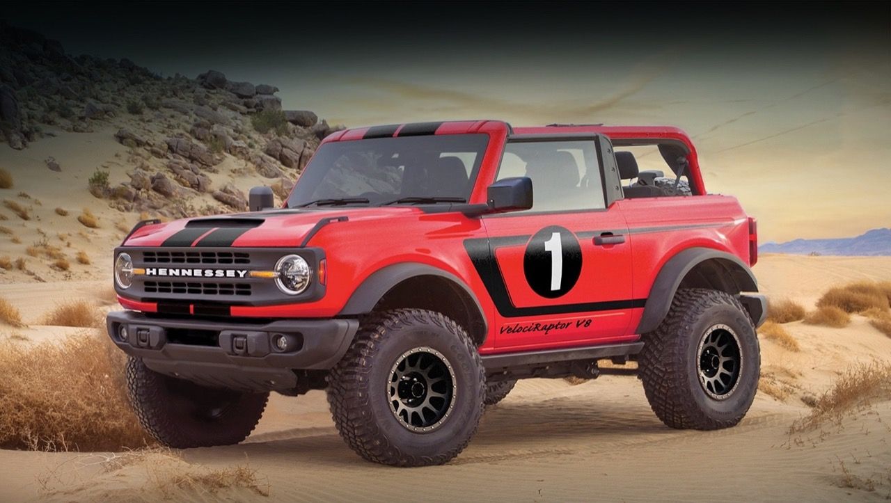 ชุดแต่งจาก Hennessey Off-Road เพิ่มยางออฟโรด ขนาด 35 นิ้ว บนล้อขนาด 18 นิ้ว กันชนหน้าและหลังจาก VelociRaptor ขึ้นรูปใหม่หมด กาบบันไดข้างไฟฟ้าแบบหดได้ ป้ายสัญลักษณ์บางส่วนบนตัวถัง และแม้กระทั่งพนักพิงศีรษะแบบปักตราสัญลักษณ์ V8 Bronco ทุกอย่างของงานจูนอัพในครั้งนี้ จะมีการรับประกันการใช้งาน เป็นเวลาสามปี หรือ 36,000 ไมล์ โดยยังคงโหมดขับเคลื่อนเดิมเอาไว้ เนื่องจากพื้นฐานระบบออฟโรดของ Bronco ทำออกมาได้ดีแล้ว Hennessey แจ้งว่า จะรับผลิต VelociRaptor V8 Bronco ตามใบสั่งของลูกค้าแค่ 21 คันเท่านั้น โดยใช้รถ Bronco รุ่นเครื่องยนต์ V6 มาเปลี่ยนขุมกำลังให้ใหญ่ขึ้น และรับทำทั้งแบบสองหรือสี่ประตูกับแบบหลังคาซอฟต์ท็อป ในราคาค่าโมที่ 22,500 เหรียญสหรัฐฯ หรือมากกว่านั้นเมื่อเลือกออปชั่นเสริมเต็มสูบ