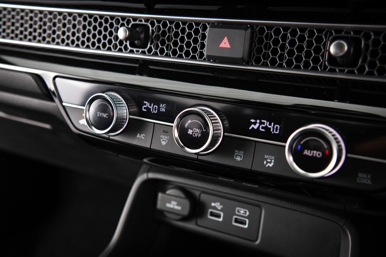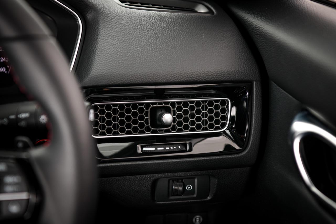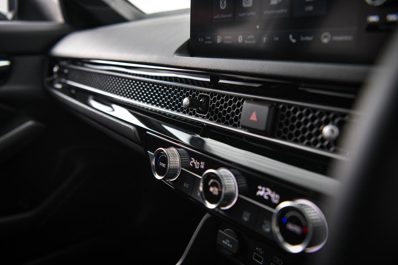 ระบบควบคุมอุณหภูมิของ New Civic RS ออกแบบได้อย่างโดดเด่น มีความน่าใช้งาน โดยปรับรูปแบบของสวิตช์ทรงกลม เพื่อสั่งปรับอุณหภูมิ ระดับความแรงของพัดลมแอร์ในห้องโดยสาร สวิตช์ควบคุมอากาศหมุนเวียนภายใน สวิตช์ AC รวมถึงสวิตช์ละลายฝ้าหน้า-หลัง ช่องแอร์ทรงรังผึ้งแบบใหม่สวยงามถูกใจ มีก้านปรับทิศทางของช่องแอร์ที่ออกแบบในสไตล์ย้อนยุค