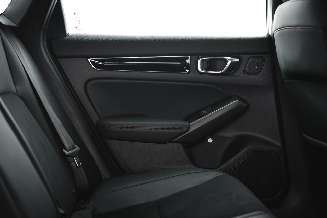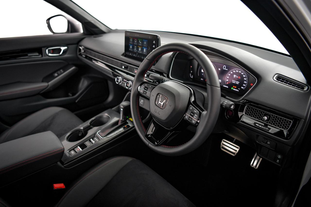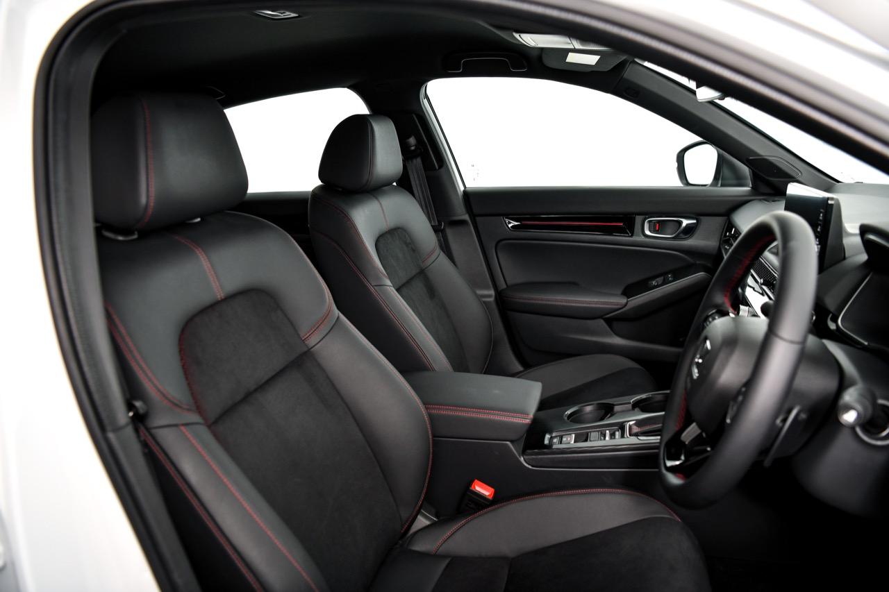 ห้องโดยสารปรับเปลี่ยนใหม่ทั้งหมดจนไม่เหลือเค้าโครงเดิม ไล่จากเบาะทุกตำแหน่ง หุ้มด้วยหนังสังเคราะห์และผ้าไมโครไฟเบอร์ที่ทำออกมาคล้ายกับหนังกลับ Alcantara ตัวเบาะสีเทาดำเย็บเดินตะเข็บด้วยด้ายสีแดงตามสไตล์การตกแต่งของ Civic รุ่น RS เบาะคนขับปรับไฟฟ้า เบาะหลังมีพื้นที่มากพอสำหรับนั่งสองคน โดยเฉพาะพื้นที่วางเท้าและพื้นที่เหนือศีรษะซึ่งถือว่าทำออกมาได้ดี