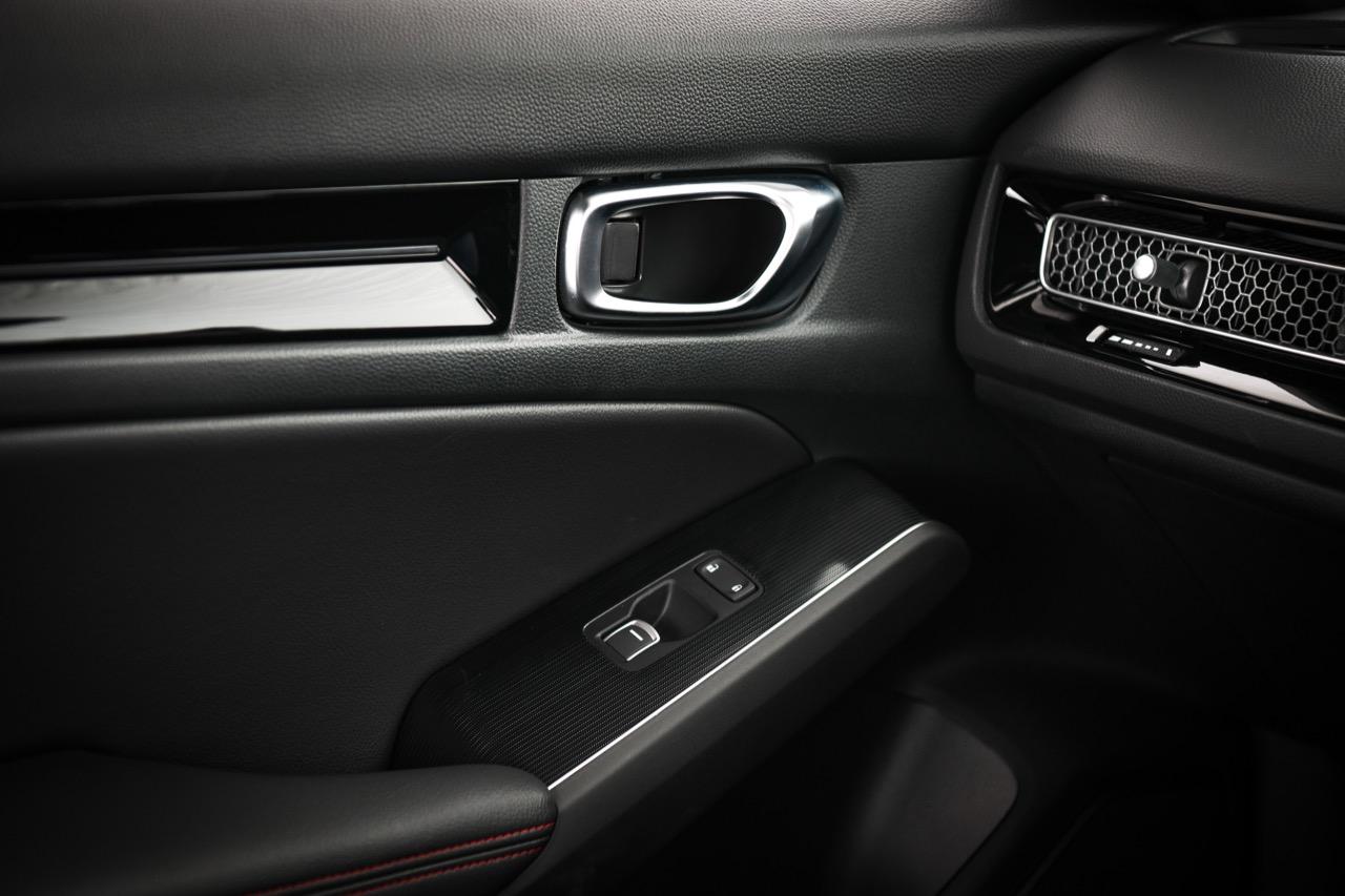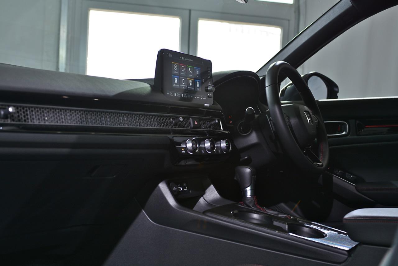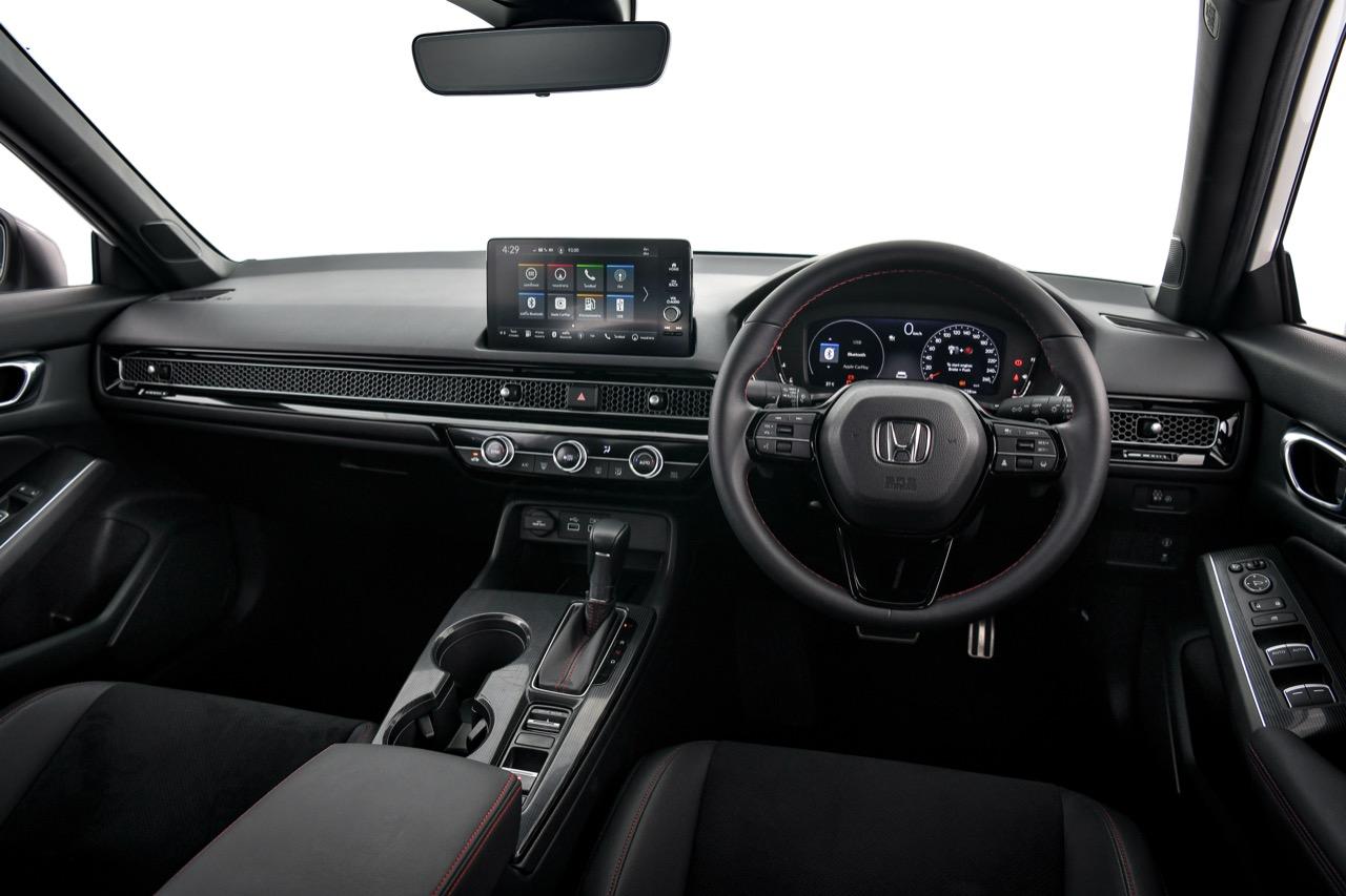 ห้องโดยสารปรับเปลี่ยนใหม่ทั้งหมดจนไม่เหลือเค้าโครงเดิม ไล่จากเบาะทุกตำแหน่ง หุ้มด้วยหนังสังเคราะห์และผ้าไมโครไฟเบอร์ที่ทำออกมาคล้ายกับหนังกลับ Alcantara ตัวเบาะสีเทาดำเย็บเดินตะเข็บด้วยด้ายสีแดงตามสไตล์การตกแต่งของ Civic รุ่น RS เบาะคนขับปรับไฟฟ้า เบาะหลังมีพื้นที่มากพอสำหรับนั่งสองคน โดยเฉพาะพื้นที่วางเท้าและพื้นที่เหนือศีรษะซึ่งถือว่าทำออกมาได้ดี