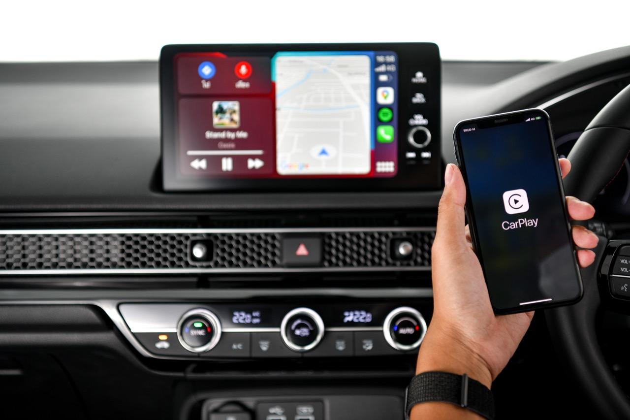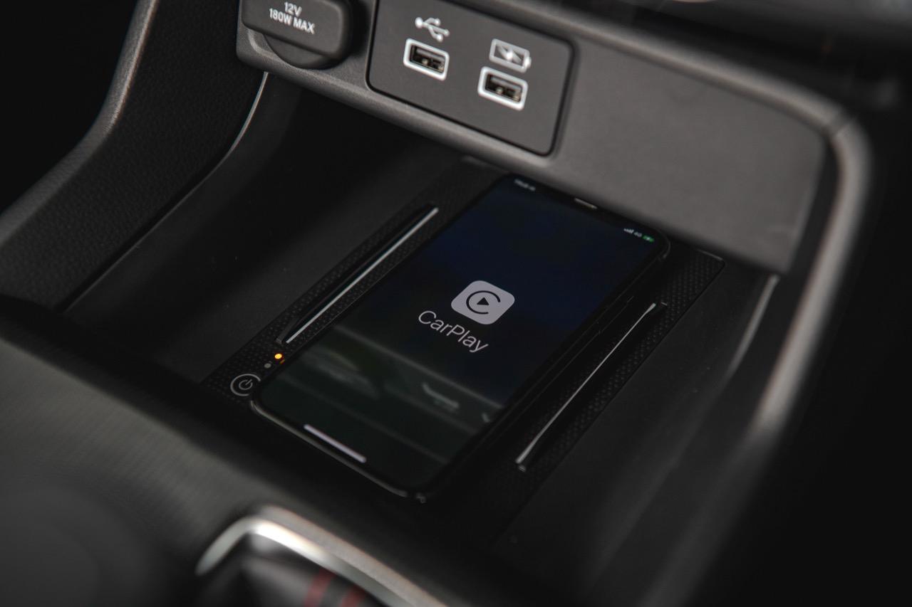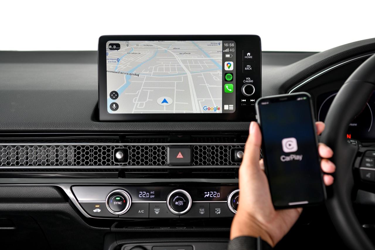 จอกลางสั่งงานด้วยระบบสัมผัส ขนาด 9 นิ้ว ทำหน้าที่คล้ายกับเป็นศูนย์ข้อมูลและสั่งงานประจำรถ ประกอบไปด้วยการเชื่อมต่อสื่อสารกับโลกภายนอก ระบบนำทางด้วยดาวเทียม การเชื่อมต่อโทรศัพท์ในระบบบลูทูธ วิทยุ AM-FM ฟังก์ชันคำนวณระยะทาง การตั้งค่าต่างๆ กล้องมองหลัง และกล้องมองด้านข้างที่ติดอยู่ใต้กระจกมองข้างด้านซ้าย การอัปเดตระบบ คู่มือเจ้าของรถและระบบอินโฟเทนเมนต์ รองรับ Apple CarPlay และ Android Auto แบบไร้สาย! ที่ชอบก็คือแทนชาร์จโทรศัพท์แบบไร้สาย Standard Wireless Charger จุดเสียบ USB Type C