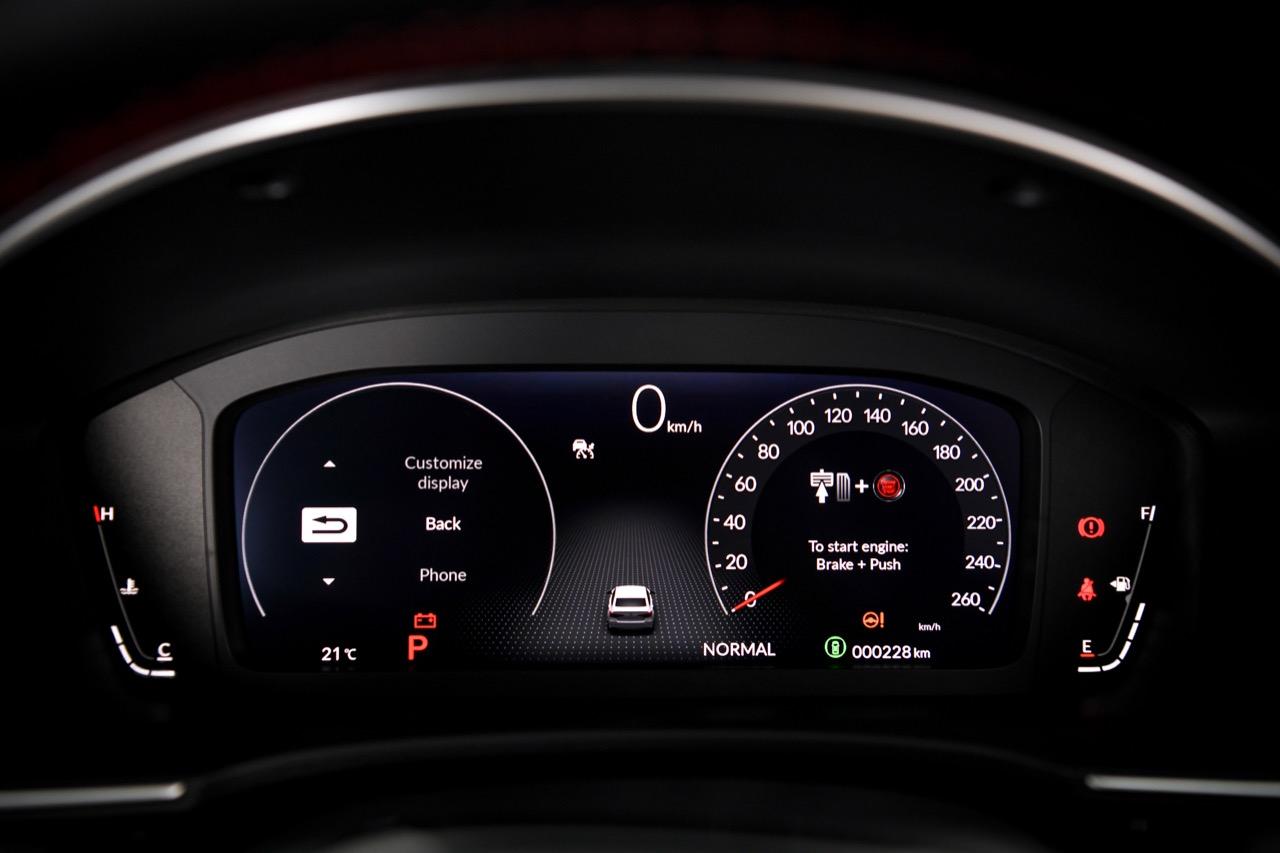 แดชบอร์ดคอนโซลแบบใหม่หล่อขึ้นรูปด้วยพลาสติก ตื่นตาตื่นใจไปกับงานดีไซน์ที่ไม่เคยพบเห็นที่ไหนมาก่อน โดยเฉพาะใน Civic ทั้ง 10 เจน ที่ผ่านมา ก็ยังไม่เคยมีห้องโดยสารที่ทันสมัยแบบนี้ มาตรวัดแบบ TFT มีจอภาพที่แสดงผลมาตรวัดรอบและวัดความเร็ว พร้อมจอ MID Multi Information Display ที่อยู่ในกรอบวัดรอบ ปรับเปลี่ยนสถานะของการแจ้งข้อมูลต่างๆ ที่มีความครอบคลุม มุมทั้งสองด้านของกรอบมาตรวัด ด้านซ้ายมีชุดวัดอุณหภูมิการทำงานของเครื่องยนต์ ด้านขวาเป็นมาตรวัดระดับของเชื้อเพลิง