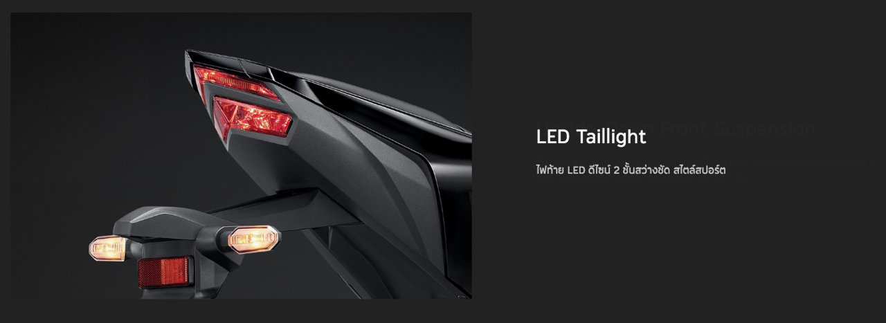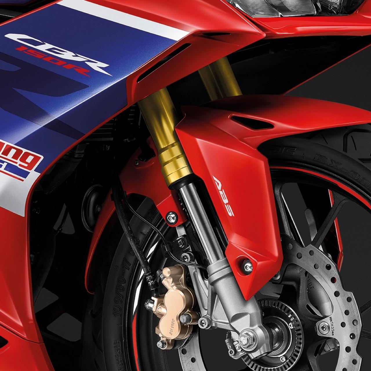 New CBR150R ยกระดับระบบกันสะเทือน ใช้โช้คหน้าแบบหัวกลับ (Upside-down Shock Absorber) จากแบรนด์ SHOWA ยกระดับความปลอดภัยด้วยดิสก์เบรกหน้า-หลัง พร้อมระบบเบรกแบบ ABS (เฉพาะรุ่น ABS) เสริมด้วยระบบไฟฉุกเฉิน ESS แสดงสัญญาณไฟกะพริบเมื่อใช้เบรกอย่างกะทันหัน