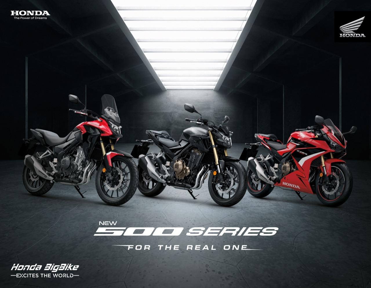 Thai Honda Manufacturing ผู้ผลิตและจัดจำหน่ายรถจักรยานยนต์ Honda ในประเทศไทย เปิดเผยว่า “บิ๊กไบค์ Honda ในตระกูล 500 Series เป็นโมเดลที่มีความสำคัญ และเป็นหนึ่งในจุดเริ่มต้นของกระแสการขับขี่บิ๊กไบค์ในเมืองไทย จากมาตรฐานการผลิตและเทคโนโลยีที่ผู้ขับขี่ให้การยอมรับ ส่งผลให้ 500 Series ขึ้นแท่นเป็นบิ๊กไบค์ที่มียอดจำหน่ายมากที่สุดทันทีที่เปิดตัวในไทย ตั้งแต่ปี 2012 เป็นต้นมา New 500 Series ได้รับการพัฒนาเพื่อส่งมอบจักรยานยนต์ที่มีความหลากหลาย ให้กับกลุ่มลูกค้ามาอย่างต่อเนื่อง และในปี 2021 Honda ทำการยกระดับ 500 Series ให้เทียบเท่าซุปเปอร์ไบค์ระดับท็อปคลาส เพื่อสร้างความตื่นเต้นและตอบโจทย์นักบิด ด้วยการติดตั้งเทคโนโลยีชั้นสูง สำหรับคนที่ต้องการเข้าสู่โลกของบิ๊กไบค์