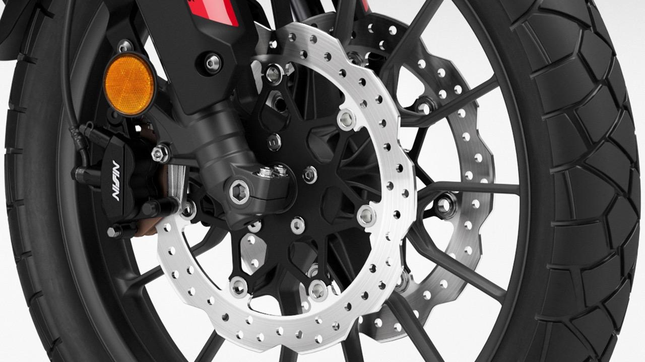 Honda Bigbike New 500 Series ทั้ง 3 รุ่น ติดตั้งโช้กอัพหน้าแบบหัวกลับขนาดใหญ่ 41 มม. แบรนด์ SHOWA รองรับแรงกระแทก ยกระดับความปลอดภัยด้วยดิสก์เบรกหน้าคู่ ทำงานร่วมกับระบบเบรก ABS ให้ประสิทธิภาพการเบรกเหมือนบิ๊กไบค์ระดับท็อป รุ่น New CBR500R และ New CB500F จะเป็นดิสก์เบรกหน้าคู่พร้อมด้วยคาลิปเปอร์แบบ Radial Mount 4 Pots ส่วนในรุ่น New CB500X จะเป็นดิสก์เบรกหน้าคู่พร้อมคาลิปเปอร์แบบ Twin Piston 2 Pots ไฟหน้า LED มีความสว่างเพิ่มขึ้นกว่าเดิม 25% ล้อแม็กหน้า-หลัง ลายใหม่ โดยในรุ่น New CBR500R และ New CB500F จะมาพร้อมกับล้อแม็กลาย Y-Spoke 5 ก้านคู่ ขนาด 17 นิ้ว ขณะที่รุ่น New CB500X กับล้อแม็กดีไซน์ใหม่ ขนาด 19 นิ้ว
