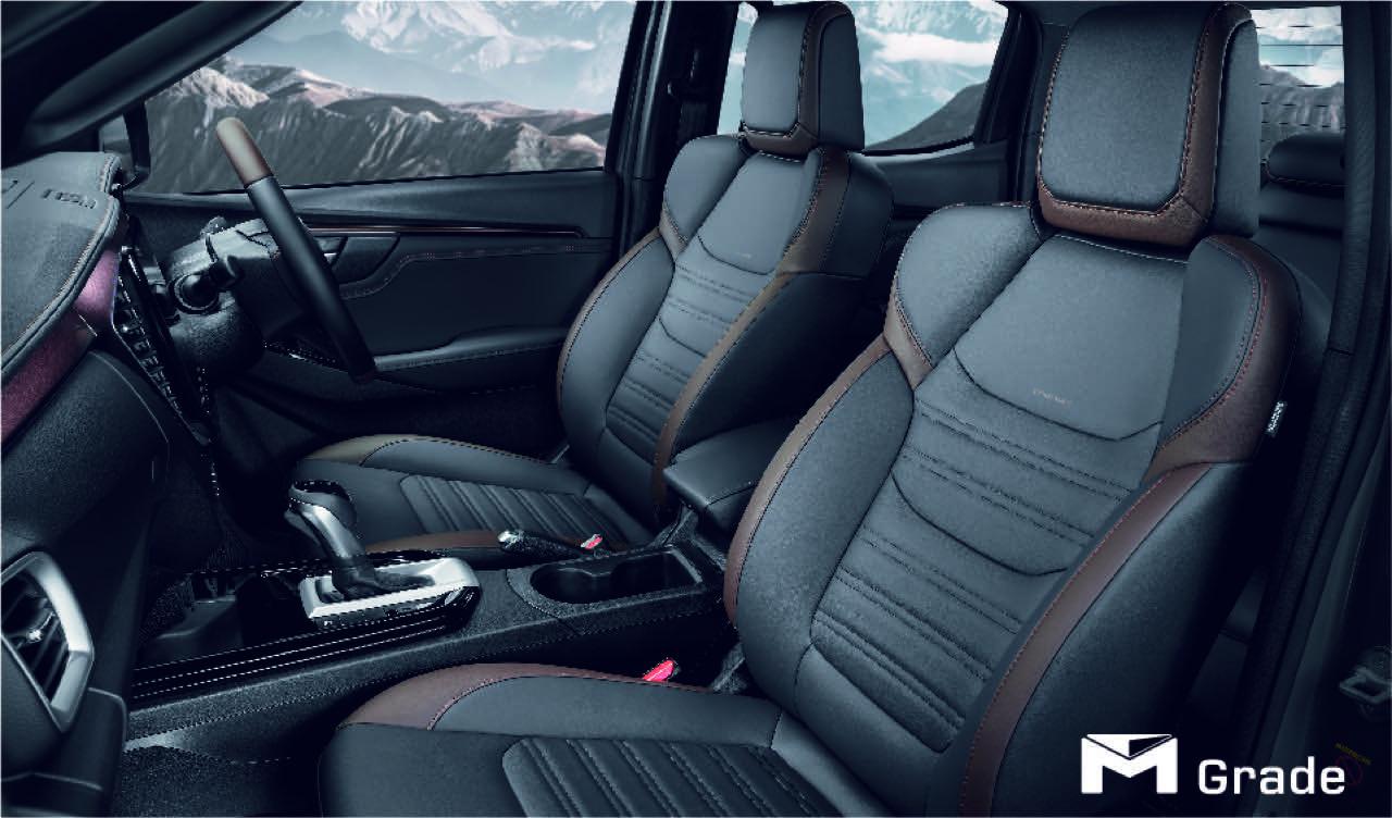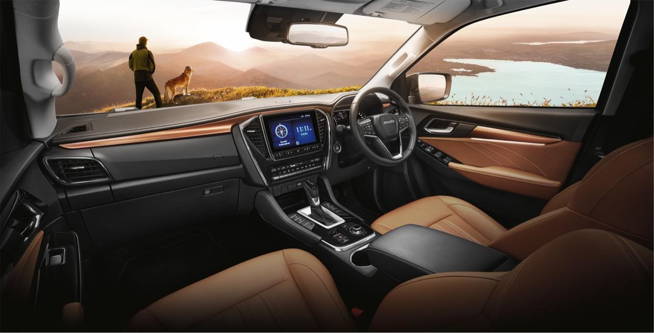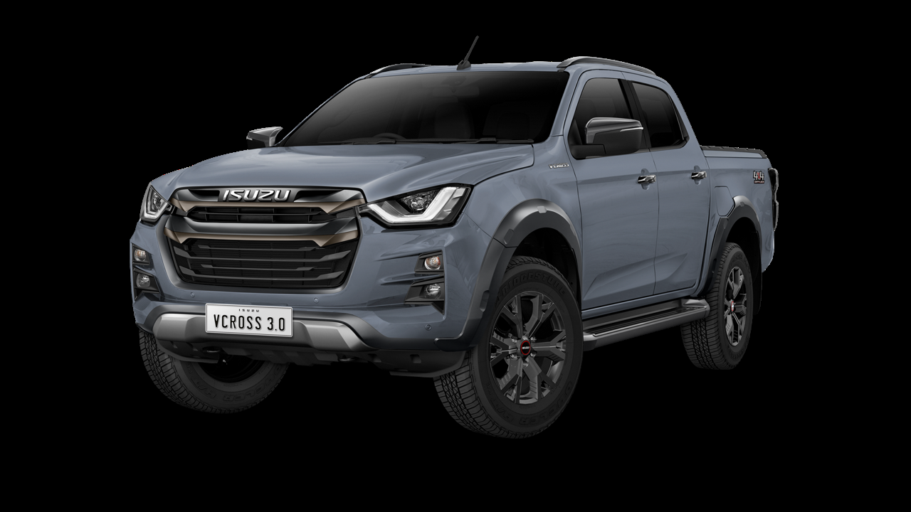 Isuzu D-MAX V-Cross 4x4 เครื่องยนต์ 3.0 DDI กระจังหน้าแบบ Double Dimensions สีทูโทน สีเทาดำ และ Black Chrome ไฟท้าย โทนสีเข้ม Front Bumper Guard สีทูโทน ชุดแต่งสีเทาดำรอบคันที่กระจกมองข้าง ราวหลังคา มือจับประตู บันไดข้าง Fender Lip, Robust Extender ล้ออัลลอยขนาด 18 นิ้ว Robust Radius สี Matte Black ห้องโดยสารดีไซน์ High-Class & Sporty สีทูโทน ดำ-น้ำตาล คอนโซลหน้าสีดำ เบาะคู่หน้าใหม่ เดินด้ายสีน้ำตาล พวงมาลัย สีทูโทน เล่นระดับกับแผงข้างประตู วัสดุตกแต่งสี Brown Cafe และ Satin Silver ระบบความบันเทิง ISUZU Ultimate Entertainment