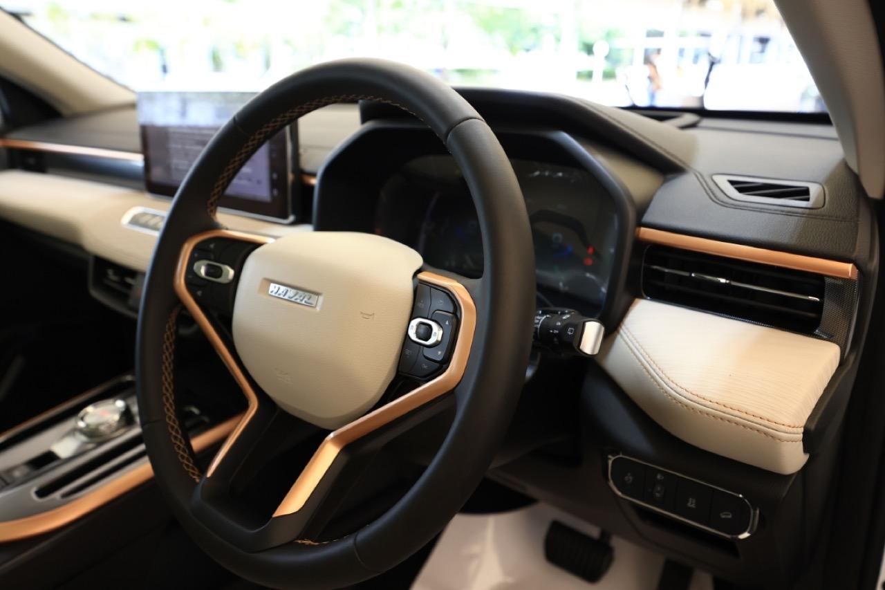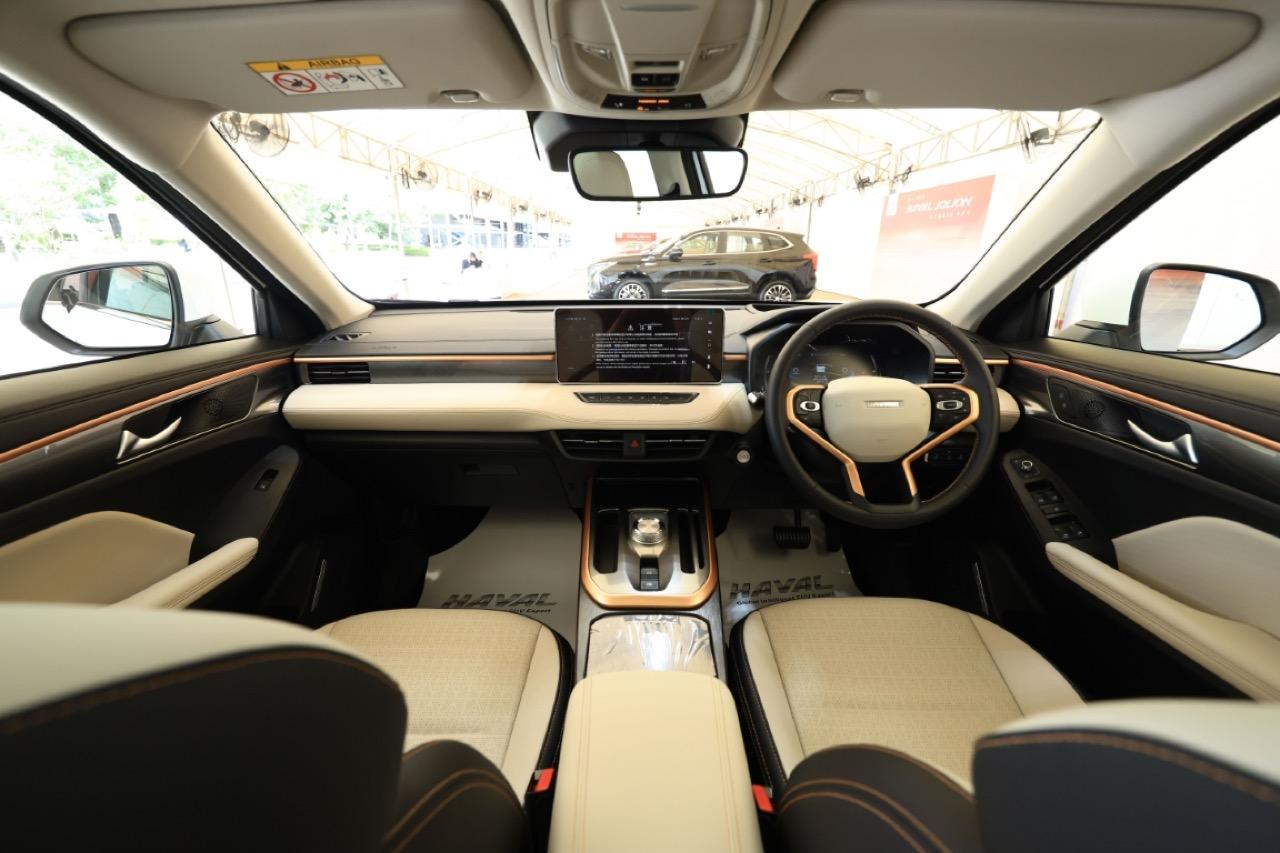 All New HAVAL JOLION Hybrid SUV ห้องโดยสารแบบ Two Tone ตัดด้วยลายเส้นสีโรสโกลด์ (Rose Gold) สีเงิน (Silver) สีดำ (Piano Black) และสีโครม (Chrome) ลำโพง 6 ตัว และหน้าจอกลาง Touch Screen Audio Display ความละเอียดสูง ขนาด 12.3 นิ้ว รองรับ Apple CarPlay การเล่น MP3 รวมไปถึง JOOX และระบบนำทาง (Navigator) ที่สามารถบอกตำแหน่ง Point of Interest ทั้งร้านอาหาร ปั๊มน้ำมัน และห้างสรรพสินค้า