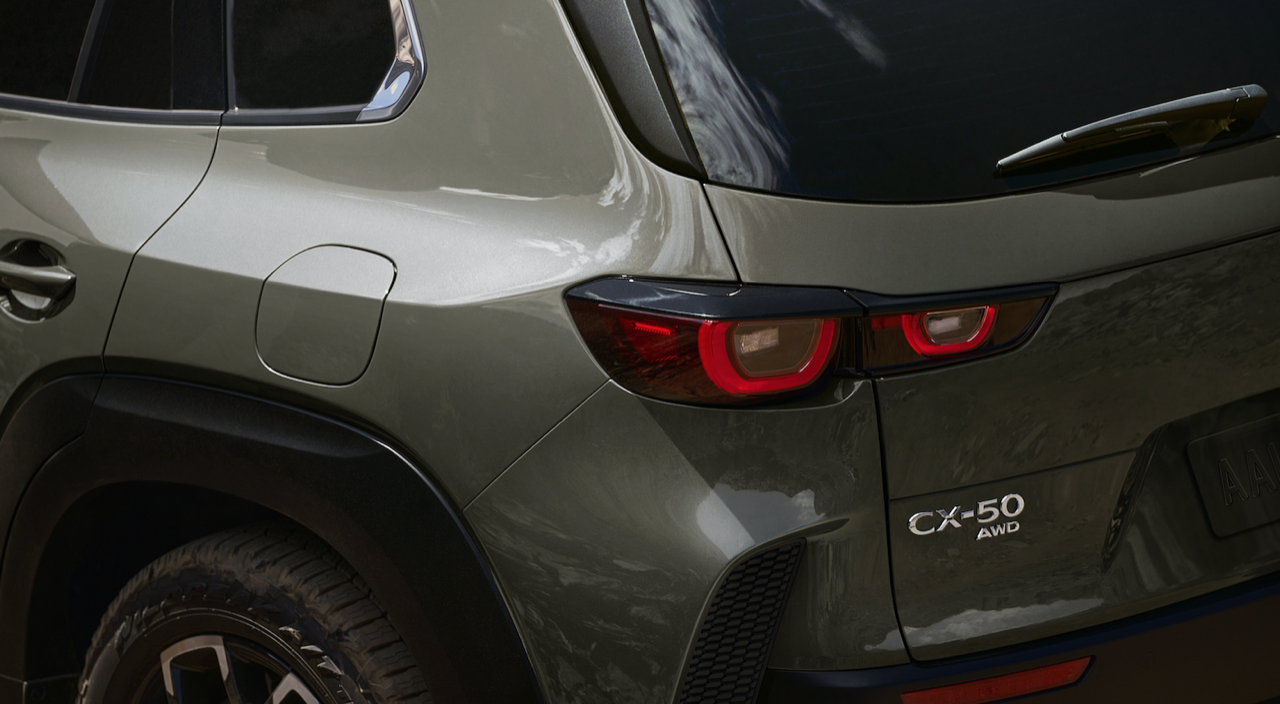 ระบบขับเคลื่อนสี่ล้อแบบมาตรฐาน i-Activ all-wheel-drive system มีคุณสมบัติการเลือกโหมดการขับขี่ หรือที่ Mazda เรียกว่า Mi-Drive สามารถปรับแต่งได้ตามสภาพถนน Mazda แสดงรายการโหมดการขับขี่เฉพาะ เช่น Normal, Sport และ Off-Road แต่ยังบอกด้วยว่า คุณสามารถใช้สวิตช์ Mi-Drive สำหรับการลากจูง รูปลักษณ์ภายนอกของ CX-50 ยังคงรักษาแนวทางการออกแบบที่เป็นซิกเนเจอร์ของแบรนด์ นั่นก็คือ “Kodo Design” สไตล์รถลุยสำหรับผู้คนที่ชอบใช้กลางแจ้ง ตามแบบฉบับของรถผจญภัย มีการหุ้มพลาสติกสีดำที่ซุ้มล้อและแผงหน้าปัด พร้อมรางหลังคาที่มีความแข็งแรงสูงขึ้น ความคล่องตัวที่เพิ่มขึ้น กระจังหน้าเน้นสีดำ ช่องระบายอากาศที่ใหญ่ขึ้นอยู่ที่ด้านข้างของกันชนทั้งสองข้าง สามารถเลือกงานสีภายนอก Zircon Sand ที่ดูเฉียบคม เพื่อให้เข้ากับรูปลักษณ์ที่แข็งแกร่งของ CX-50