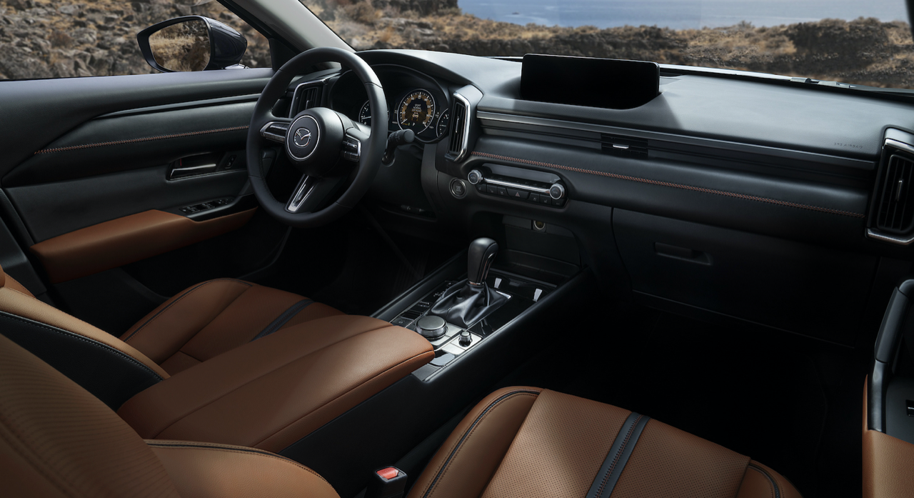 ภายใน CX-50 ยังคงรูปแบบเฉพาะตัวที่เน้นการใช้งานอุปกรณ์ต่างๆ ของคนขับไว้ครบถ้วน วัสดุและอุปกรณ์ตกแต่งระดับไฮเอนด์ อย่างไรก็ตาม เบาะนั่งมีความสวยงามและไม่เหมือนใคร ซึ่งคุณจะไม่สามารถหาได้จากรถเอสยูวีแบรนด์อื่นที่มีราคาใกล้เคียงกัน ซึ่งรวมถึงสีภายในแบบ Terracotta หลังคากระจกไฟฟ้ามูนรูฟแบบพาโนรามา Mazda ยังปรับแต่งช่องเก็บของใหม่ เพื่อให้เหมาะกับความต้องการของผู้ที่ชื่นชอบทำกิจกรรมกลางแจ้งกับครอบครัว