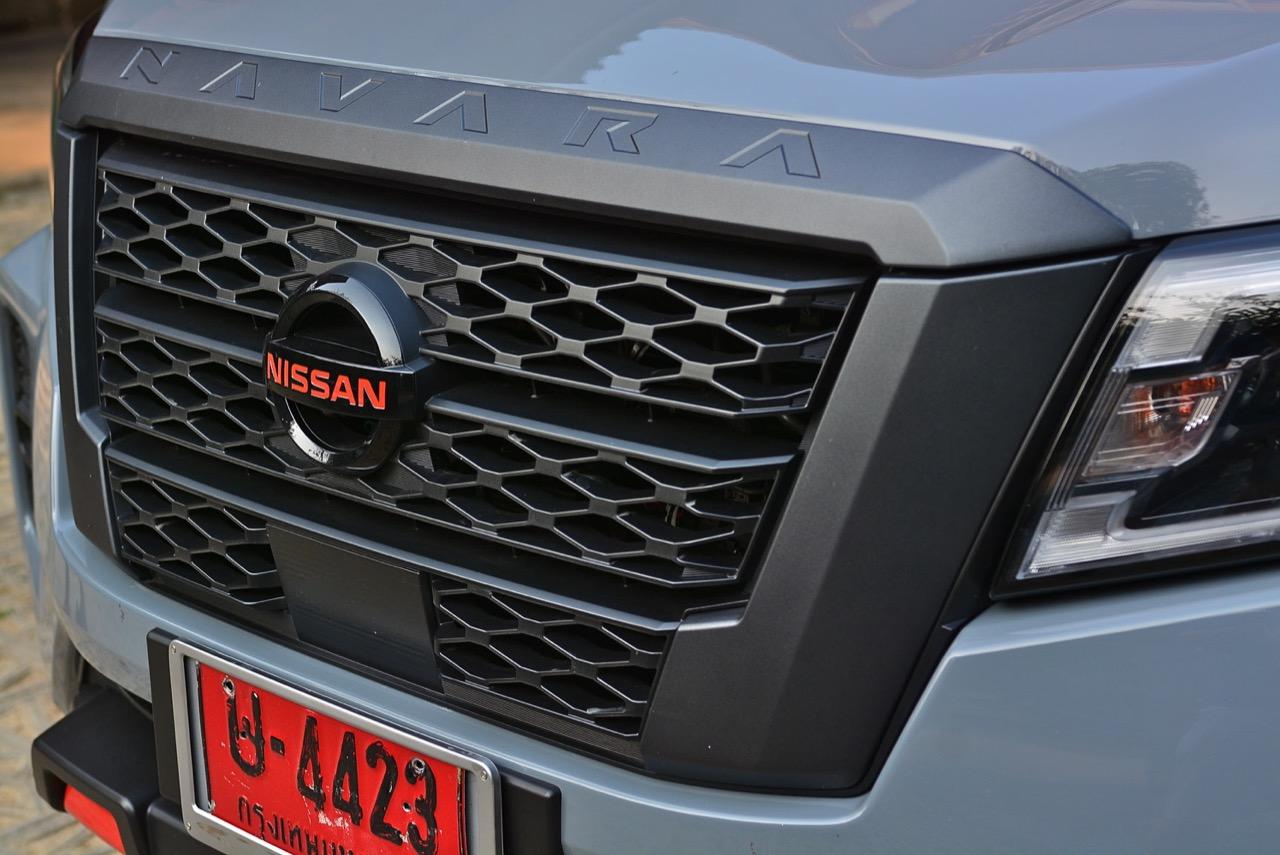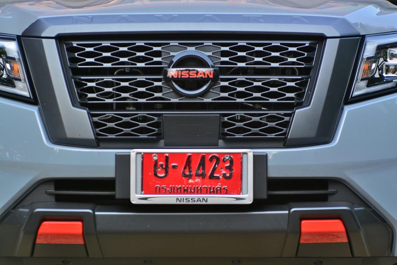 (1) โลโก้ NAVARA ฝากระโปรงหน้าสีส้มลาวา