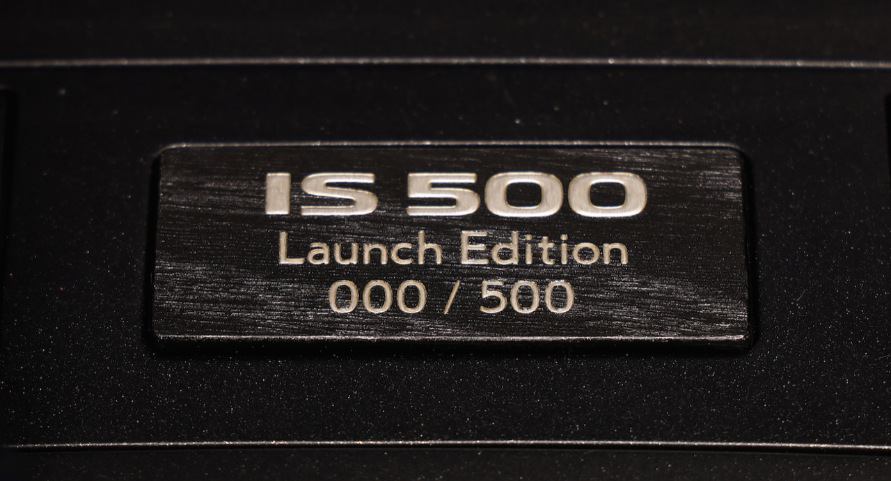 ภายนอกของ IS 500 Launch Edition งดงามและดุดันจากการออกแบบไฟหน้าและกระจังหน้าที่เฉียบคมกว่าเดิม ล้ออัลลอย Matte Black BBS® แบบแยกชิ้น ลาย 7 ก้าน ขนาด 19 นิ้วแบบมาตรฐานจาก IS F SPORT Dynamic Handling Package ไม่เพียงแค่รูปลักษณ์ที่น่าประทับใจเท่านั้น ล้อ BBS® ขนาด 19 นิ้วยังเบากว่าประมาณ 4 ปอนด์ต่อล้อ เมื่อเทียบกับล้อมาตรฐาน IS F SPORT ขนาด 19 นิ้ว สำหรับ IS รุ่นพิเศษที่ผลิตแค่ 500 คัน จะจำหน่ายเฉพาะโทนสี Incognito ซึ่งเป็นสีใหม่สำหรับกลุ่มผลิตภัณฑ์ Edition ของ Lexus