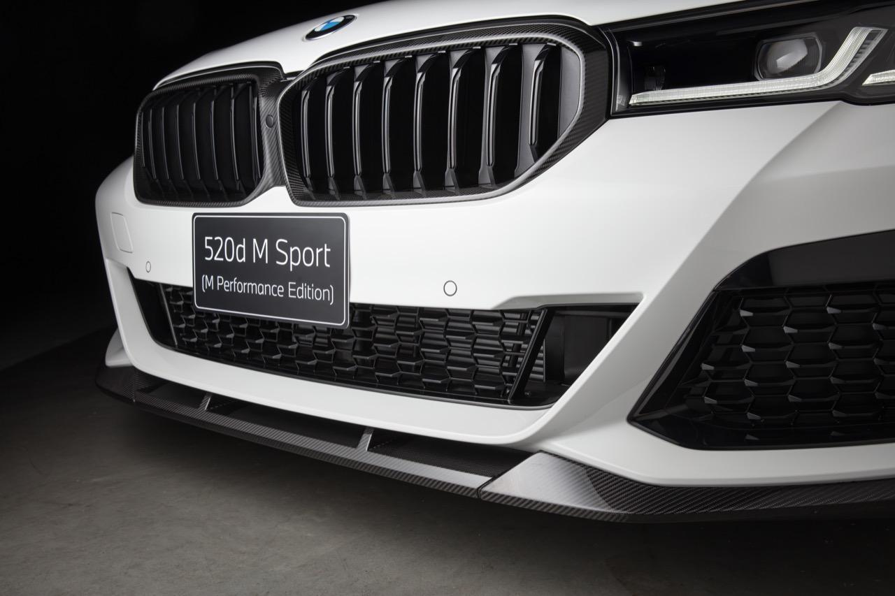 สำหรับชุดอุปกรณ์ตกแต่ง M Performance ในรถยนต์ BMW 520d M Sport (M Performance Edition) ประกอบด้วย กระจังหน้าทรงไตคู่คาร์บอนไฟเบอร์ M Performance, สปลิทเตอร์หน้าคาร์บอนไฟเบอร์ M Performance, สปอยเลอร์หลังคาร์บอน, ฝาครอบกระจกคาร์บอน, แถบสติกเกอร์ข้างตัวรถ M Performance และสติกเกอร์สัญลักษณ์ M Performance บริเวณสเกิร์ตข้าง ทั้งนี้ ชุดอุปกรณ์ตกแต่ง M Performance สำหรับรถยนต์ BMW 520d M Sport (M Performance Edition) จะเปิดให้จองในราคาพิเศษเพียง 80,000 บาท จากราคาปกติ 210,000 บาท (รวมภาษีมูลค่าเพิ่มและค่าติดตั้ง) สำหรับลูกค้า 80 คนแรกที่เลือกซื้อรถยนต์บีเอ็มดับเบิลยู 520d M Sport พร้อมแพ็กเกจ M Performance ผ่านช่องทางออนไลน์เท่านั้น เรียกว่าเดินไปจองในโชว์รูมไม่ได้ ใช้จองผ่านออนไลน์อย่างเดียว