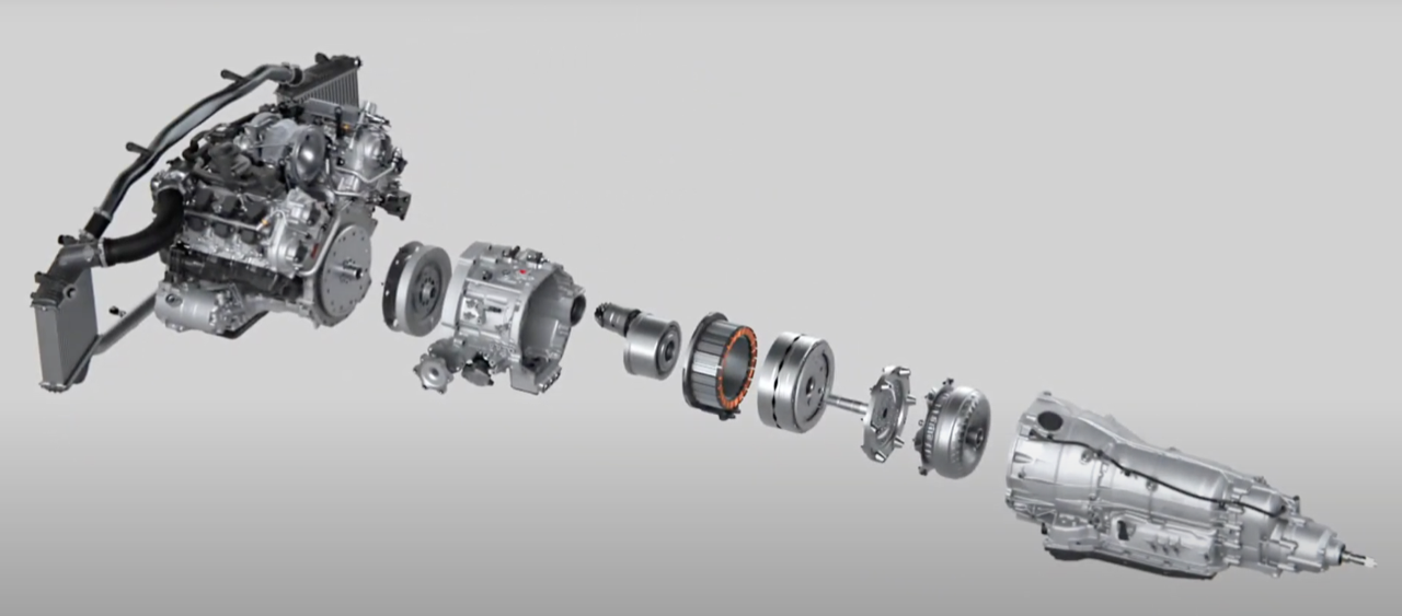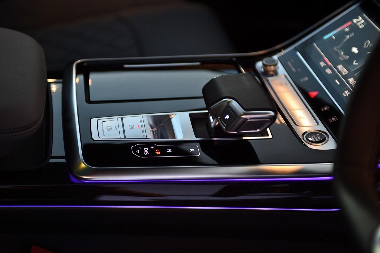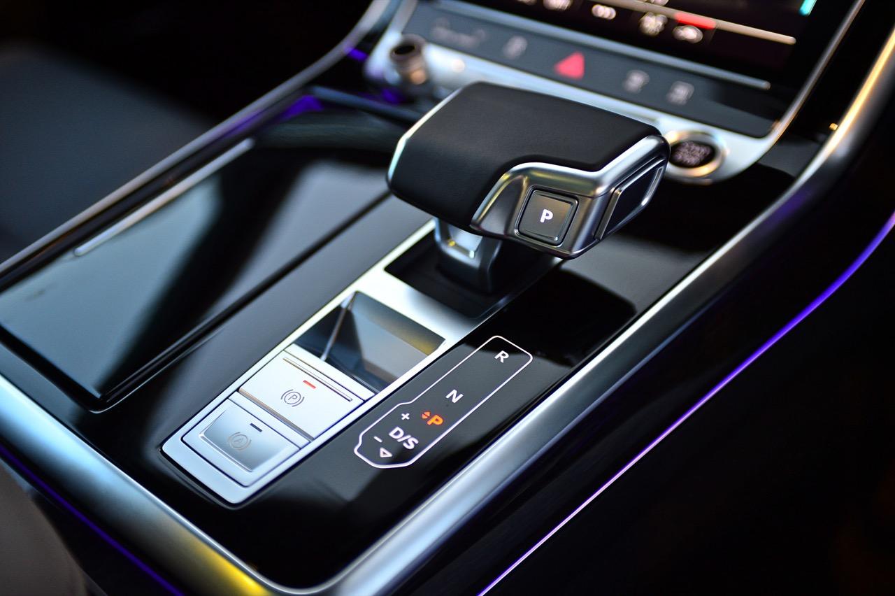 มอเตอร์ไฟฟ้าและเครื่องยนต์เบนซิน V6 3.0 TFSI ส่งกำลังไปยังเกียร์ Triptronic 8 สปีด เป็นชุดส่งกำลังที่ปรับตั้งให้สามารถเปลี่ยนอัตราทดได้อย่างรวดเร็ว ไหลลื่นปราศจากอาการกระตุกกระชาก ปั๊มเชื้อเพลิงแบบไฟฟ้าของระบบ TFSI ช่วยให้จ่ายน้ำมันได้อย่างแม่นยำ แม้เครื่องยนต์เบนซิน V6 จะปิดการทำงาน ระบบขับเคลื่อนทุกล้อแบบถาวรหรือ Quattro มีการควบคุมทางกล ระหว่างการขับขี่ปกติ Quattro จะกระจายแรงบิด 40 เปอร์เซ็นต์ไปยังเพลาหน้า และ 60 เปอร์เซ็นต์ไปทางล้อด้านหลัง เมื่อเซนเซอร์ของชุด Quattro ตรวจพบว่า มีความจำเป็นจะต้องผกผันแรงบิดอย่างต่อเนื่อง ก็สามารถส่งกำลังที่มากขึ้นไปยังเพลาเพื่อเสริมแรงยึดเกาะให้ดีขึ้น ชุดขับเคลื่อนสี่ล้อแบบใหม่ สามารถกระจายแรงบิดไปยังเพลาหน้าได้ถึง 85 เปอร์เซ็นต์ หรือส่งถ่ายไปยังเพลาหลังได้ถึง 70 เปอร์เซ็นต์