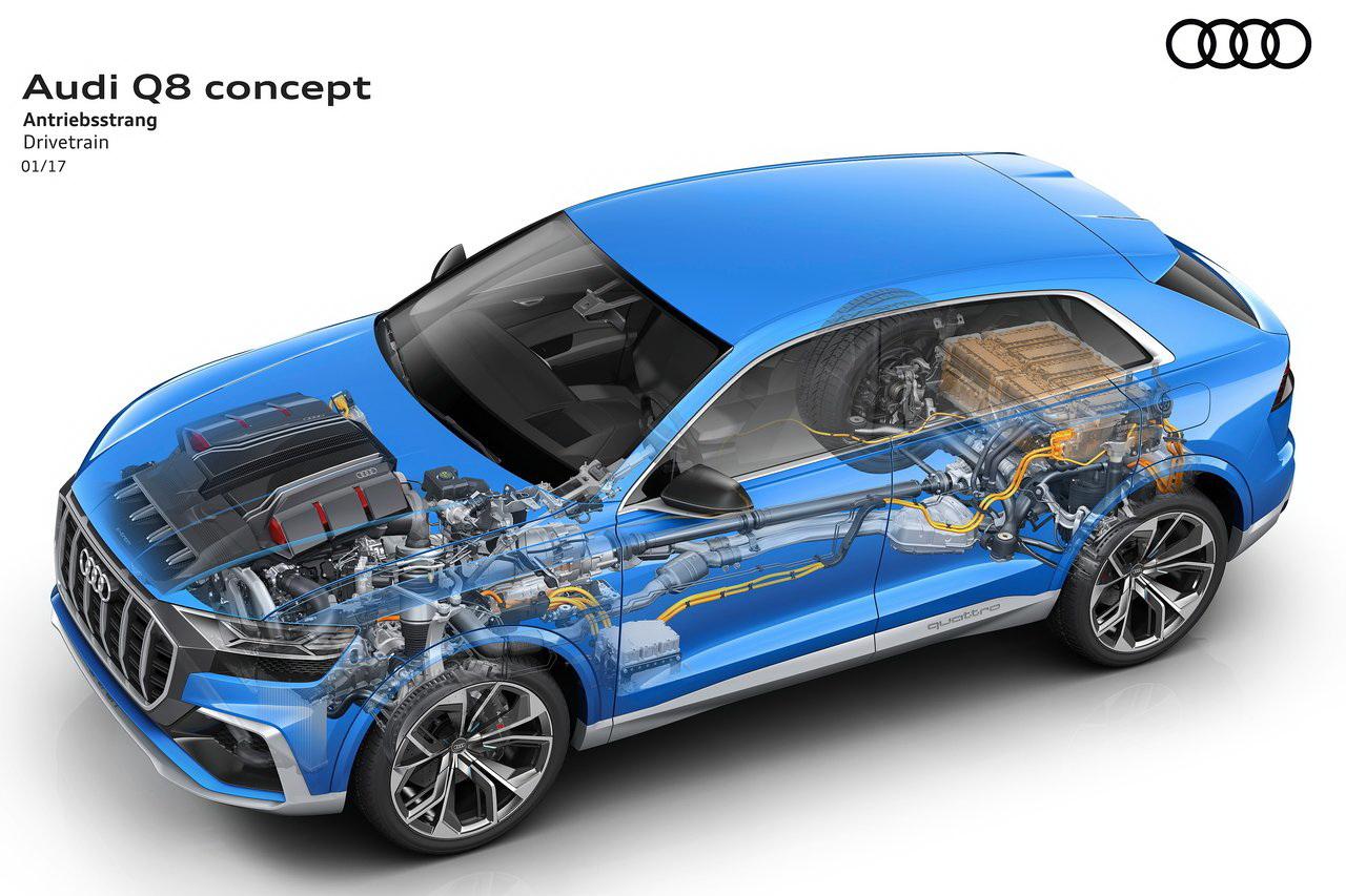 Audi รุดหน้ากับการพัฒนาศักยภาพของระบบขับเคลื่อนแบบผสมผสาน การใช้พลังงานไฟฟ้าอย่างต่อเนื่องกับรถ Q8 TFSI e quattro SUV Coupé นับเป็นสี่ห่วงรุ่นที่ 7 ที่ใช้ระบบขับเคลื่อนแบบปลั๊กอินไฮบริด โดยทำการเปิดตัวในตลาดโลก ตั้งแต่กลางปี 2019 Audi ได้นำเทคโนโลยีขับเคลื่อนแบบ Plug in Hybrid เพื่อเพิ่มทางเลือก ปิดช่องว่างทางการตลาด ช่วยให้ลูกค้าได้รับประสบการณ์การขับด้วยพลังงานผสม การจัดการกับระบบชาร์จไฟที่ออกแบบให้ใช้งานง่าย รวมถึงความสามารถในการขับเคลื่อนด้วยไฟฟ้าเพียวๆ ไกล กว่า 50 กิโลเมตร ก่อนที่จะเปลี่ยนไปเป็นระบบขับเคลื่อนไฟฟ้า 100%