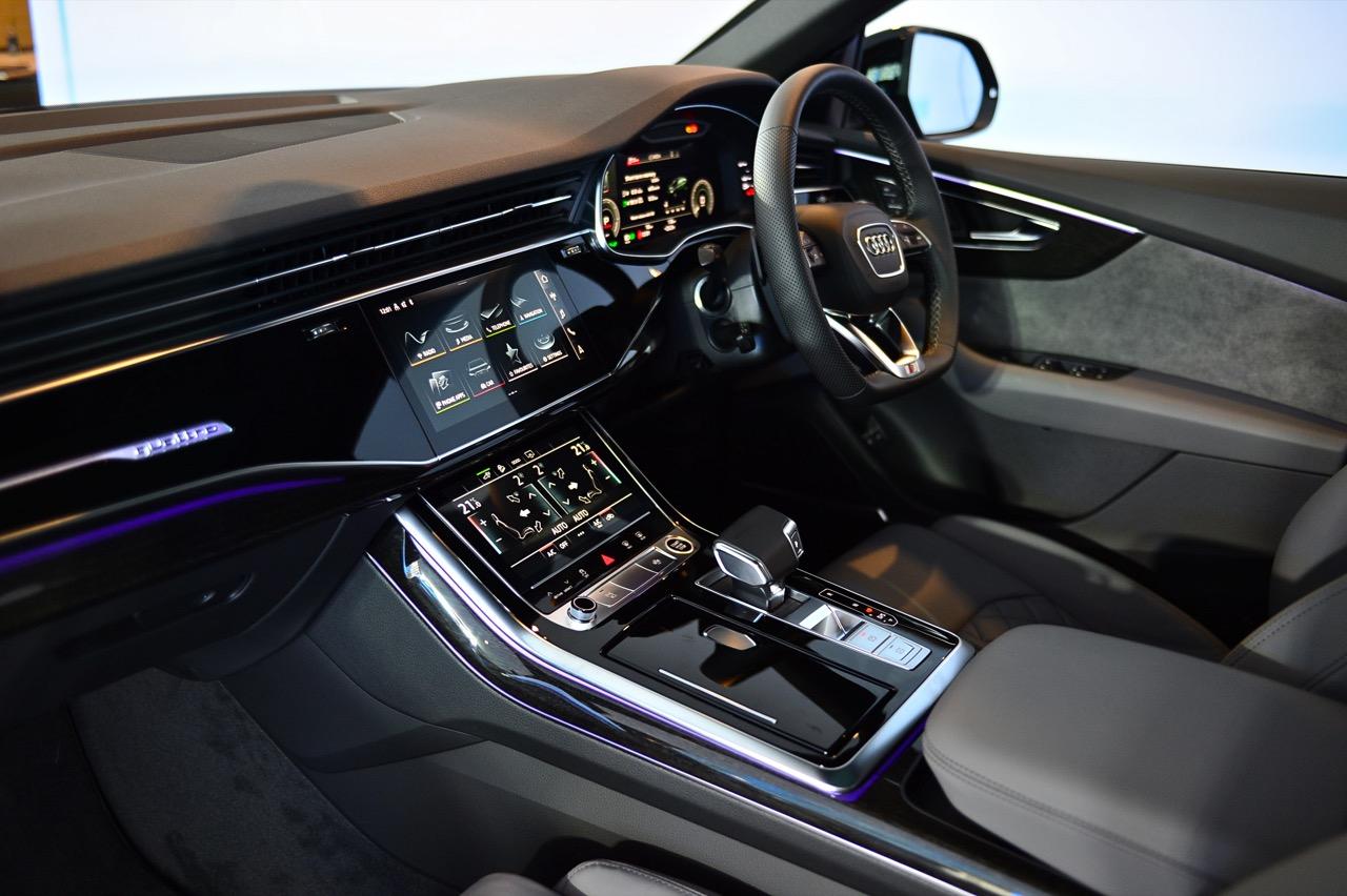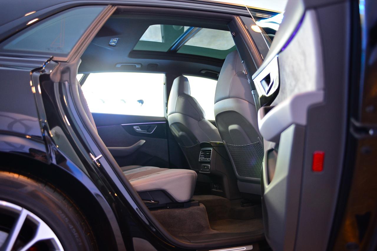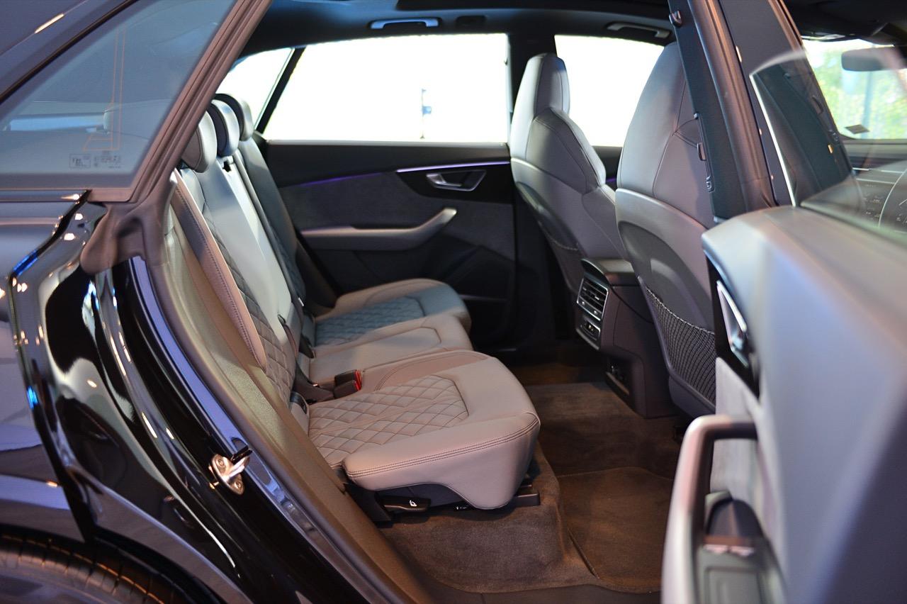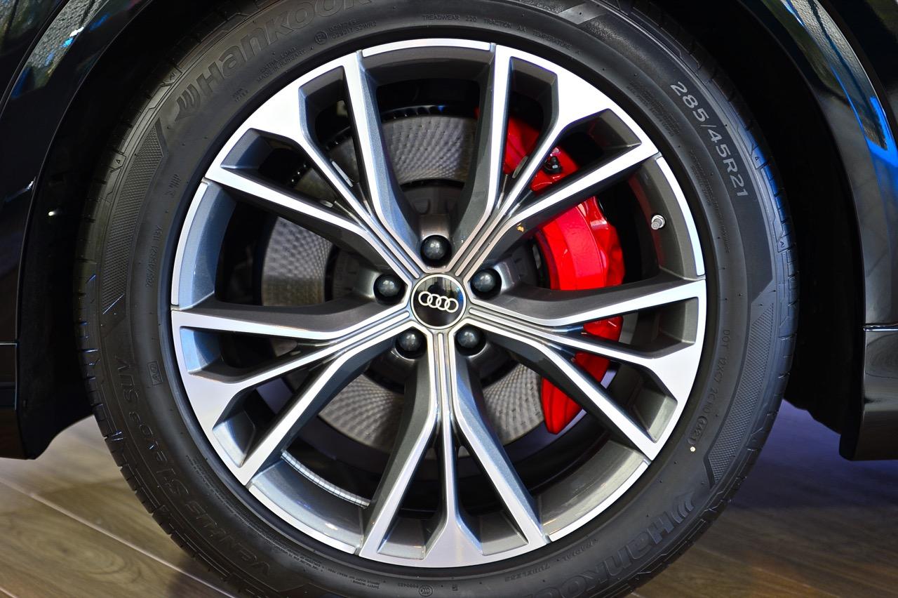 Audi Q8 60 TFSI e quattro เน้นสมรรถนะแบบสปอร์ตเอสยูวี แพ็กเกจอุปกรณ์ตกแต่งภายนอก S line Black Edition ทำให้รูปลักษณ์ดูโฉบเฉี่ยว ด้วยรายละเอียดการออกแบบที่โดดเด่นทั้งด้านหน้า ด้านข้าง และด้านหลัง แพ็กเกจ Black Edition สไตล์สีดำ ตัดกับชุดแต่งภายนอก S line ในสีเดียวกับตัวรถ ไฟหน้า Matrix LED พร้อมระบบอัตโนมัติ เป็นอุปกรณ์มาตรฐาน ระบบกันสะเทือนแบบถุงลม Adaptive Air Suspension แบบปรับระดับได้ ยางสปอร์ตขนาด 285/45 ติดตั้งบนล้อขนาด 21 นิ้ว และคาลิปเปอร์เบรกทาสีแดง แพ็กเกจ S line sport ห้องโดยสารตกแต่งด้วยสีดำ หรือบางส่วนเป็นสีเทาโรเตอร์ (บนเบาะนั่ง) ประกอบด้วยเบาะนั่งแบบสปอร์ต พร้อมลายนูนรูปตัว S แป้นเหยียบและที่พักเท้าทำจากสเตนเลส ส่วนชิ้นงานตกแต่งที่แดชบอร์ดและแผงประตูทำจากอะลูมิเนียมขัดเงาด้าน.