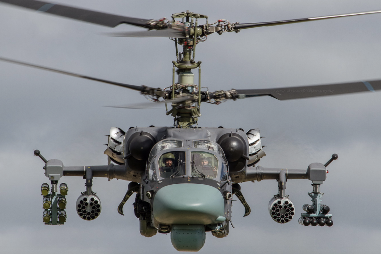 อากาศยานปีกหมุนขึ้นลงทางดิ่งที่มีขีดความสามารถในการโจมตียานรบหุ้มเกราะ นี่คือเฮลิคอปเตอร์โจมตี Ka-52 Alligator หรือชื่อที่กองกำลัง NATO ใช้เรียกขานก็คือ Hokum B เฮลิคอบเตอร์ Ka-52 แผนแบบและพัฒนาโดยบริษัทอากาศยาน Kamov นับเป็นรุ่นสองที่นั่งของเฮลิคอปเตอร์โจมตียานเกราะ รถถัง บังเกอร์ หรือกองกำลังภาคพื้นดินของฝ่ายตรงกันข้าม Ka-50 Black Shark (Hokum A) มีจุดเด่นที่คล้ายกับเฮลิคอปเตอร์ตระกูล Kamov คือ ใบพัดหลักสองชั้นหมุนสวนทางกัน ซึ่งเรียกว่า Coaxial Rotors โดยไม่มีใบพัดขนาดเล็กที่หาง ส่งผลให้ Ka-52 มีความคล่องตัวและความเร็ว แต่ระบบโรเตอร์ดังกล่าวส่งผลให้ ฮ.โจมตีทางทหารรุ่นนี้มีความซับซ้อนและมีราคาแพงกว่าเฮลิคอปเตอร์โจมตีทางทหารทั่วไป Ka-52 ถูกแนะนำเป็นครั้งแรกในเดือนธันวาคม ค.ศ.1996 ทำการบินทดสอบเที่ยวแรกในเดือนมิถุนายน ค.ศ.1997 เข้าสู่สายการผลิตในปี ค.ศ.2008 เข้าประจำการในกองทัพอากาศรัสเซียในเดือนพฤษภาคม ค.ศ.2011