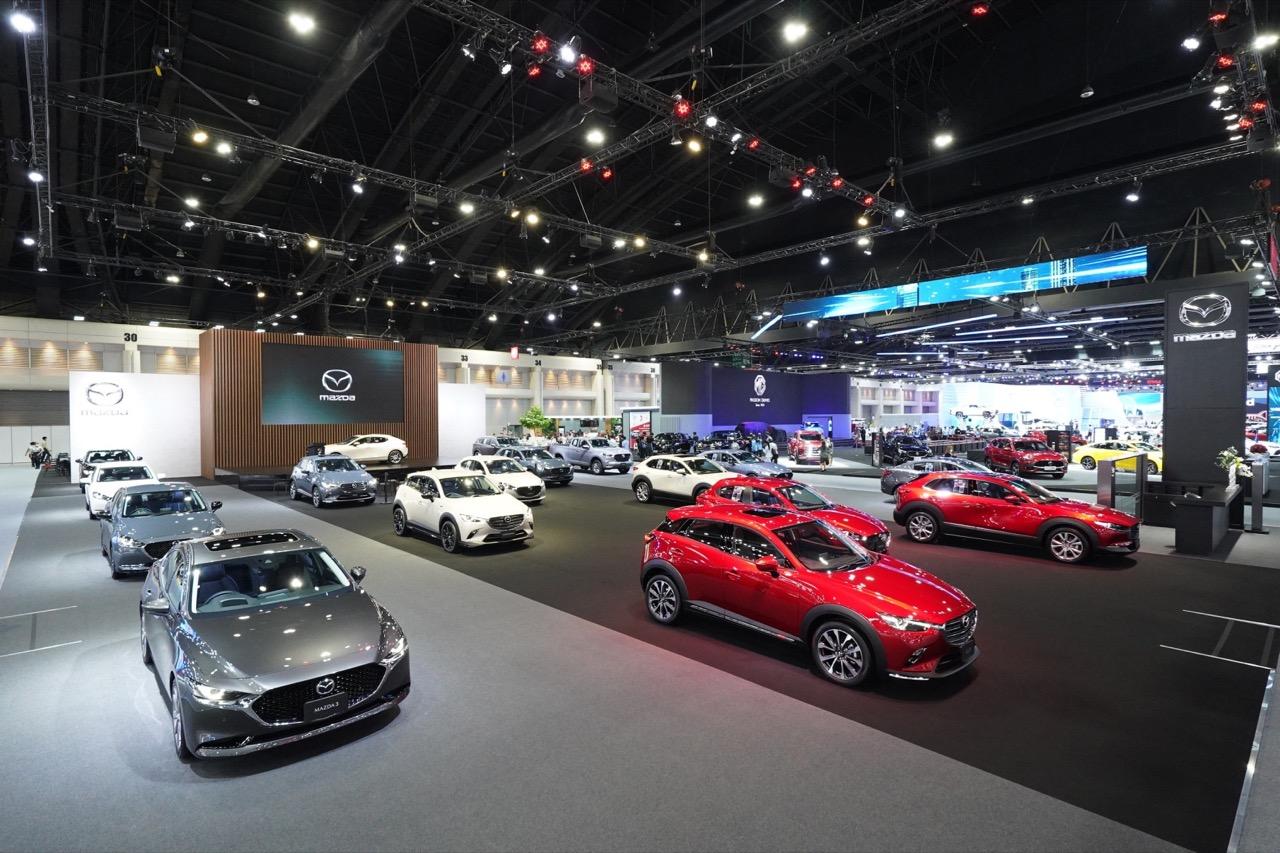 ไฮไลต์สำคัญที่บูธ MAZDA ในปีนี้ คือ รถยนต์นั่งรุ่นใหม่ล่าสุด NEW MAZDA 3 เจ้าของรางวัลรถยนต์ออกแบบยอดเยี่ยมของโลก และ Top 3 รถยนต์ยอดเยี่ยมของโลกประจำปี 2020 รวมถึงรางวัล Best Hatchback under 2,000 c.c. จากงาน Car of the Year ในปีนี้ พร้อมคอนเซปต์ “AWAKENING YOUR SOUL” หลังคาซันรูฟแบบไฟฟ้า สีใหม่ล่าสุด สีบรอนซ์ แพลตทินั่ม ควอตซ์ มีให้เลือกทั้งแบบซีดาน 4 ประตู และฟาสต์แบ็ก 5 ประตู ราคาเริ่มต้น 979,000 บาท