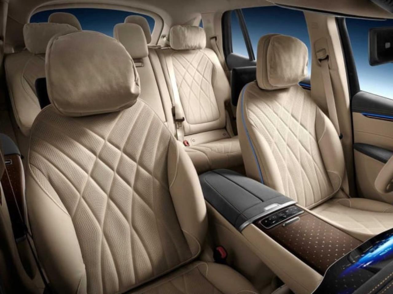 วัสดุพรีเมี่ยมเป็นเรื่องที่ Mercedes-Benz ให้ความสำคัญ เจ้าของ EQS SUV สามารถเลือกการผสมสีของวัสดุตกแต่งภายในได้เจ็ดแบบ มีการผสมผสานระหว่างวัสดุแบบดั้งเดิม เช่น หนังอย่างดีและไม้แท้ กับวัสดุที่เป็นนวัตกรรมใหม่ เช่น ขอบคิ้วไฮบริดที่ทำจากแมกโนเลียและสแตนเลสบางเฉียบ ไม้มีรูเล็กๆ ที่มีรูปร่างเหมือนโลโก้แบรนด์ ตัดด้วยเลเซอร์ EQS SUV จะมีให้เลือกทั้งในรุ่น 5 และ 7 ที่นั่ง โดยรุ่น 7 ที่ันั่ง จะมีที่นั่งแถวที่สามแบบแยกส่วน พื้นที่เก็บสัมภาระสำหรับถุงกอล์ฟสูงสุดสี่ใบ ทั้งนี้ขึ้นอยู่กับรูปแบบของจำนวนเบาะที่นั่ง