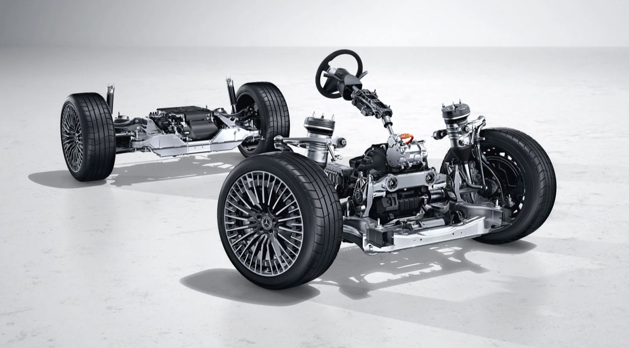 ระบบกันสะเทือนแบบถุงลม AIRMATIC พร้อมระบบกันสะเทือนแบบปรับได้ต่อเนื่อง ADS+ เป็นอุปกรณ์มาตรฐานใน Mercedes EQS SUV ที่ความเร็วบนทางหลวง ประมาณ 120 กม./ชม. ความสูงของรถ จะลดลงโดยอัตโนมัติ เพื่อลดแรงต้านของอากาศ ระดับความสูงของรถจาก 120 กม./ชม. ขึ้นอยู่กับโหมดการขับ Comfort, Sport, Eco และ Individual เชื่อมโยงการทำงานกับ AIRMATIC พร้อมฟังก์ชั่นรักษาระยะห่างจากพื้นรถให้คงที่ ไม่ว่าน้ำหนักบรรทุกของรถจะเป็นอย่างไร โดยเฉพาะการยกความสูงของรถด้วยระบบกันสะเทือนแบบถุงลมที่ความเร็วต่ำในขณะที่ขับผ่านเส้นทางวิบาก