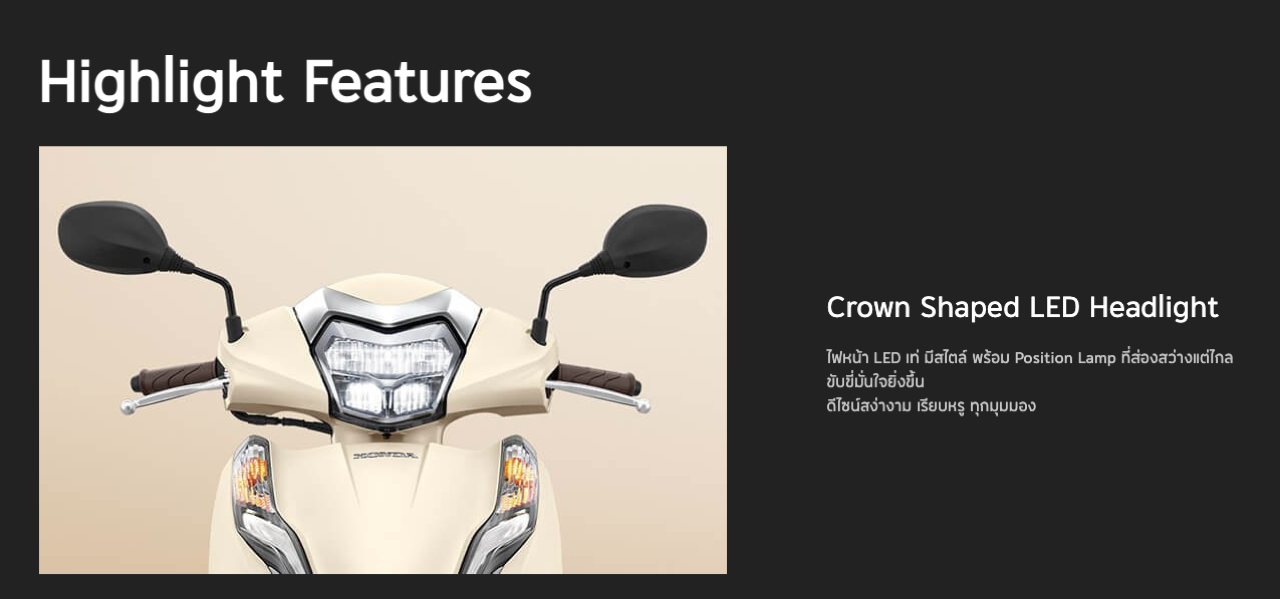 เครื่องยนต์เครื่องยนต์ eSP 125 ซีซี ระบบจ่ายน้ำมันแบบหัวฉีด PGM-FI 4 จังหวะ แบบซิงเกิลโอเวอร์เฮดแคมชาฟท์ ระบายความร้อนด้วยน้ำ
