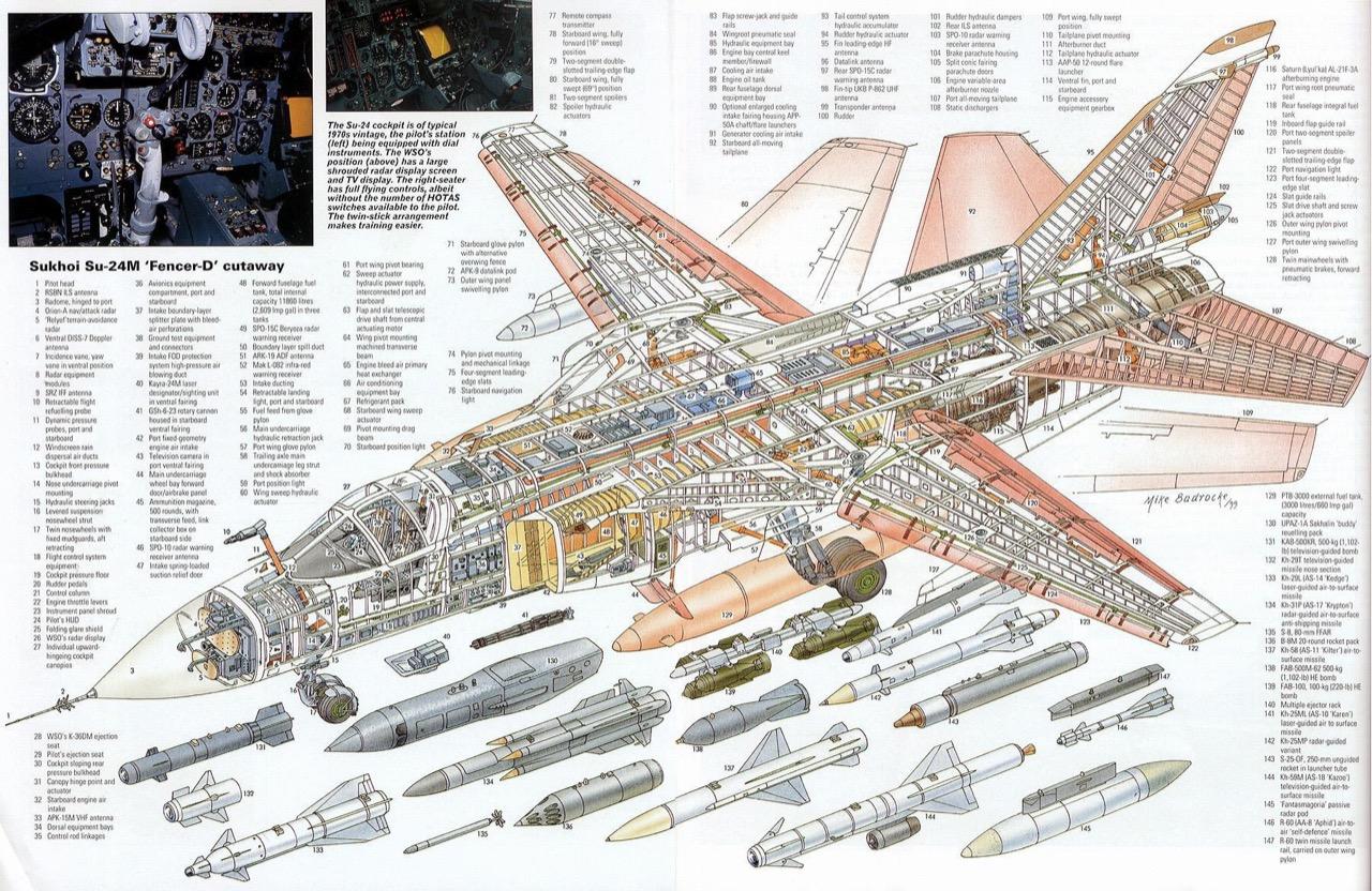 Su-24 Fencer (รหัส NATO) เป็นเครื่องบินขับไล่ไอพ่นเครื่องยนต์คู่ของรัสเซีย แผนแบบให้โจมตีได้ทุกสภาพอากาศ มีความเร็วต่ำกว่าเสียงเพื่อเน้นการโจมตีกองกำลังภาคพื้นดินของฝ่ายศัตรู นักออกแบบเครื่องบิน Sukhoi ได้รวมปีกแบบปรับมุมได้ เพื่อให้เครื่องบินมีความเสถียรที่ยอดเยี่ยมยิ่งขึ้นในระหว่างการบินโจมตีในระดับต่ำ และเป็นเครื่องบินทหารโซเวียตลำแรกที่มีระบบนำทาง/โจมตีแบบ integrated navigation/attack system