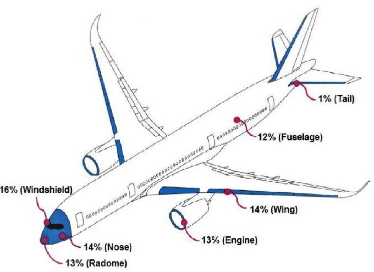 - กลุ่มนกเหยี่ยว (birds of prey) บินชนร้อยละ 11 สร้างความเสียหาย 2.7 ล้าน เหรียญ
