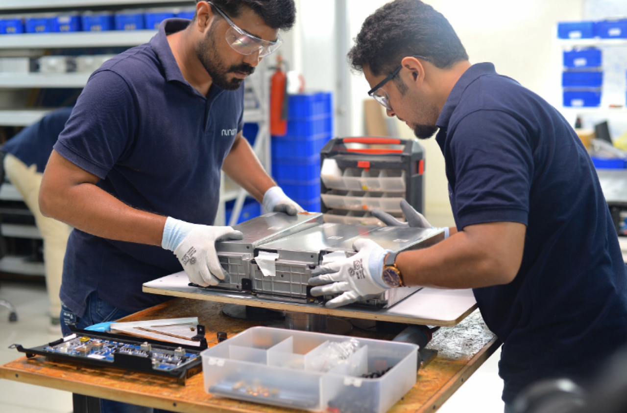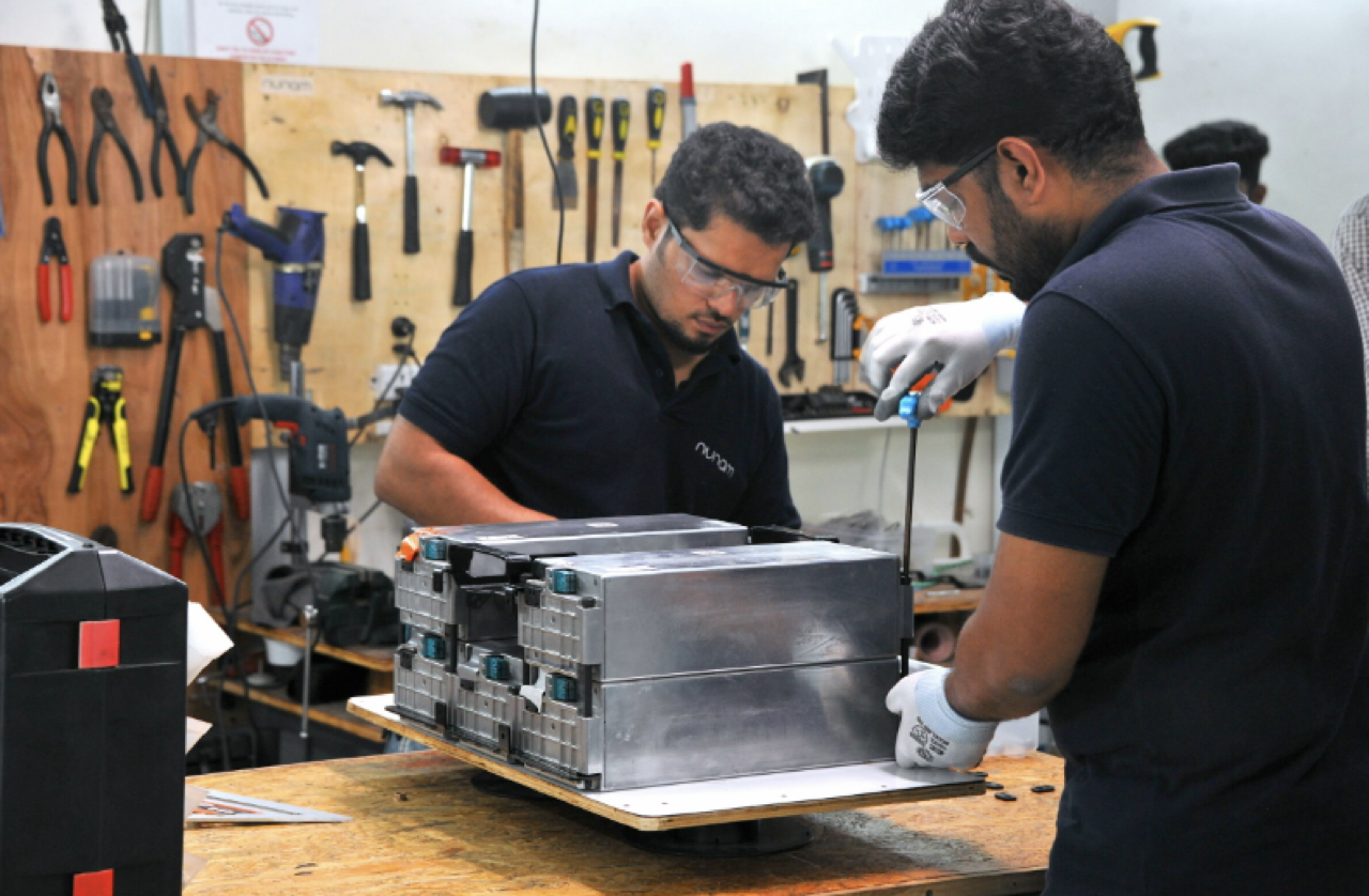 รถสามล้อไฟฟ้าตุ๊กตุ๊ก ที่ขับเคลื่อนด้วยแบตเตอรี่มือสอง มีกำหนดจะออกสู่ถนนในอินเดียเป็นครั้งแรก ในโครงการนำร่องช่วงต้นปี พ.ศ.2566 ซึ่งพร้อมให้บริการแก่องค์กรไม่แสวงหาผลกำไร โดยเฉพาะอย่างยิ่งผู้หญิงในอินเดียที่สามารถใช้รถสามล้อไฟฟ้าเพื่อขนส่งสินค้าไปยังตลาด โดยไม่ต้องใช้คนกลางที่รับจ้างขนส่งอีกต่อไป โมดูลแบตเตอรี่ใช้แล้ว ซึ่งกลับมาชุบชีวิตให้กับรถสามล้อตุ๊กตุ๊ก จากเครื่องยนต์ที่ปล่อยมลพิษมาเป็นระบบขับเคลื่อนไฟฟ้าที่สะอาดกว่าเดิม Prodip Chatterjee ผู้ร่วมก่อตั้งของ Nunam กล่าวว่า "แบตเตอรี่รุ่นเก่าของรถยนต์ไฟฟ้า Audi eTron ยังคงทรงพลังอย่างมาก เมื่อมันถูกนำกลับมาใช้งานอย่างเหมาะสม แบตเตอรี่เก่าที่ขาดการดูแลหรือกำจัดอย่างถูกวิธี อาจส่งผลกระทบมหาศาลต่อสิ่งแวดล้อม การนำกลับมาใช้ใหม่ เพื่อช่วยเหลือผู้คนในสถานการณ์ที่ท้าทายหลังการแพร่ระบาดของไวรัสโควิด-19 เพื่อทำให้ผู้คนที่ยากไร้ในอินเดียมีรายได้พอที่จะจุนเจือครอบครัวต่อไป และได้รับอิสรภาพทางเศรษฐกิจในลักษณะที่ยั่งยืนมากกว่าที่เป็นอยู่ในปัจจุบัน