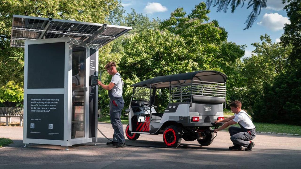 นักศึกษาในเยอรมนีที่เข้ารับการฝึกอบรม ได้เปลี่ยนระบบขับเคลื่อนของรถยนต์ จากเครื่องยนต์สันดาปไปเป็นมอเตอร์ไฟฟ้า และออกแบบพื้นที่เพื่อรองรับแบตเตอรี่สำรองรวมถึงการป้องกันน้ำและความชื้นต่างๆ โดยใช้วัสดุรีไซเคิลให้ได้มากที่สุดเท่าที่จะเป็นไปได้ นักศึกษาในแผนกช่างเทคนิคเมคคาทรอนิกส์ ช่างพ่นสี ช่างเครื่องมือ ผู้เชี่ยวชาญด้านไอที และช่างเทคนิคระบบขับอัตโนมัติ ล้วนมีส่วนร่วมในโครงการนี้ “เรารู้สึกตื่นเต้นที่สามารถเสนอโอกาสให้ผู้เข้ารับการฝึกอบรมของ Audi เข้าร่วมในโครงการระดับนานาชาติผ่านเครือข่ายของมูลนิธิ เพื่อแลกเปลี่ยนความรู้ ทักษะ และเทคโนโลยีใหม่ๆ ของระบบขับเคลื่อนไฟฟ้า” Rüdiger Recnagel กล่าว.