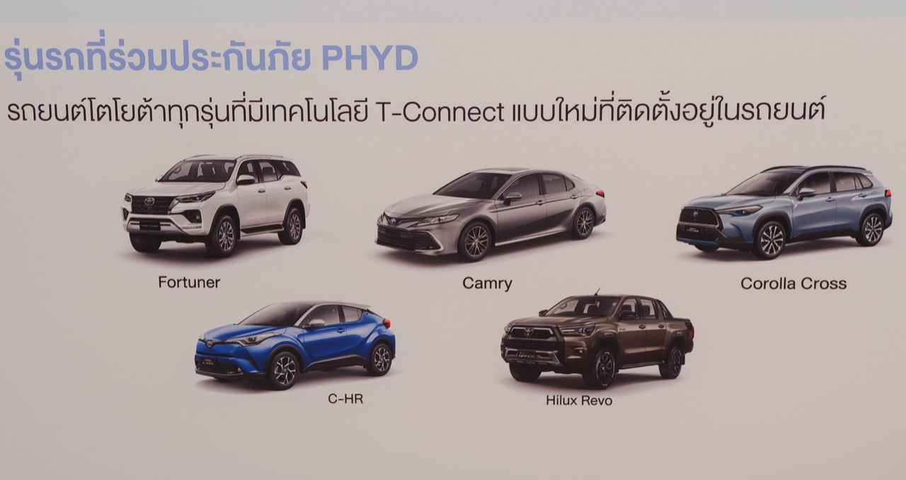 นายสุรศักดิ์ สุทองวัน กล่าวเพิ่มเติมว่า “ลูกค้าสามารถมั่นใจได้ว่า เรามีการเก็บรักษาข้อมูลส่วนบุคคลได้อย่างปลอดภัย ผ่านการขอความยินยอมจากลูกค้าตามกฎหมาย PDPA ทั้งนี้ประกันภัยชั้น 1 Toyota CARE “ขับดี ลดให้” Toyota Care PHYD - Pay How You Drive เราได้ให้บริการในรถยนต์ โตโยต้าทุกรุ่นที่มีเทคโนโลยี T-Connect แบบใหม่ที่ติดตั้งอยู่ในรถยนต์รุ่น Hilux Revo / Fortuner / Corolla Cross / C-HR / Camry ที่แนะนำสู่ตลาดในปี พ.ศ. 2563 เป็นต้นไป