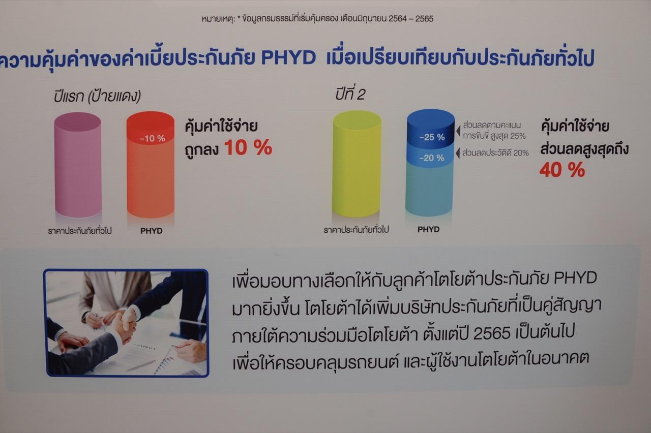 สุรศักดิ์ สุทองวัน รองกรรมการการผู้จัดการใหญ่ Toyota Motor Thailand ร่วมกับ มร.ฮิเดโอะ อิวาซาวะ กรรมการผู้อำนวยการ บริษัท ไอโออิ กรุงเทพ ประกันภัย จำกัด (มหาชน) แถลงข่าวประกาศความสำเร็จ ประกันภัยรูปแบบใหม่ ภายใต้ประกันภัยชั้น 1 Toyota CARE ขับดี ลดให้ “PHYD-Pay How You Drive” กับจำนวนสมาชิกมากกว่า 120,000 ราย ภายในระยะเวลา 24 เดือนแรกหลังจากการเปิดตัว หนึ่งในบริการหลักที่เติบโตสูงสุดในภาคพื้นเอเชียตะวันออกเฉียงใต้ เทคโนโลยีคอนเนกเต็ด “Connected Technology” เพื่อความเป็นผู้นำเทคโนโลยีการบริการ และให้ความสะดวกสบายกับลูกค้า เมื่อวันที่ 5 กรกฎาคม 2565 ณ TOYOTA ALIVE บางนา กม.3