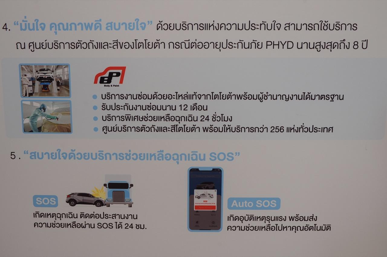 - ส่วนลด 1,000 บาท สำหรับค่าอะไหล่ หรือ ค่าบริการ เช็กระยะ และซ่อมทั่วไป เมื่อนำรถเข้าศูนย์บริการโตโยต้า ทั่วประเทศ ตั้งแต่ 5 กรกฎาคม - 31 ธันวาคม 2565 โดยส่วนลดสามารถใช้กับค่าอะไหล่ และเคมีภัณฑ์เท่านั้น (ส่วนลดสำหรับเข้ารับบริการ 1 ครั้งเท่านั้น ไม่สามารถเก็บไว้ใช้ในครั้งต่อไป และไม่สามารถแลก หรือทอนเป็นเงินสด หรือโอนสิทธิ์ไปยังลูกค้าท่านอื่น)