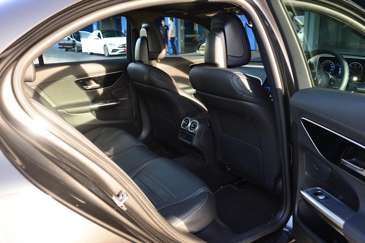 บั้นท้ายโค้งมน ขอบของฝากระโปรงท้ายยกสันนูนเพื่อเพิ่มมิติมุมมอง ไฟท้าย LED คุณภาพสูง ดึงดูดสายตาด้วยรูปลักษณ์ของไฟท้ายแบบสองชิ้น เลนส์ไฟถอยสีขาวอยู่ตรงมุมของไฟท้าย ตำแหน่งของไฟเลี้ยวที่อยู่ตรงกึ่งกลาง มองเห็นได้อย่างชัดเจนทั้งกลางวันและกลางคืนจากความเข้มและกำลังในการส่องสว่างของหลอด LED เป็นครั้งแรกที่ไฟท้ายมีดีไซน์แบบสองชิ้นใน C-Class โดยแบ่งฟังก์ชันไฟระหว่างส่วนด้านข้างของบั้นท้ายและฝากระโปรงท้าย การตัดแต่งเสริมเฉพาะเส้นในกันชนหลัง ทำให้มุมมองด้านหลังดูผสมผสานกันอย่างกลมกลืน สีตัวถัง เริ่มจาก สีขาว Polar White / สีดำ Obsidian Black / สีเทา Graphite Grey และ สีเงิน High-tech Silver