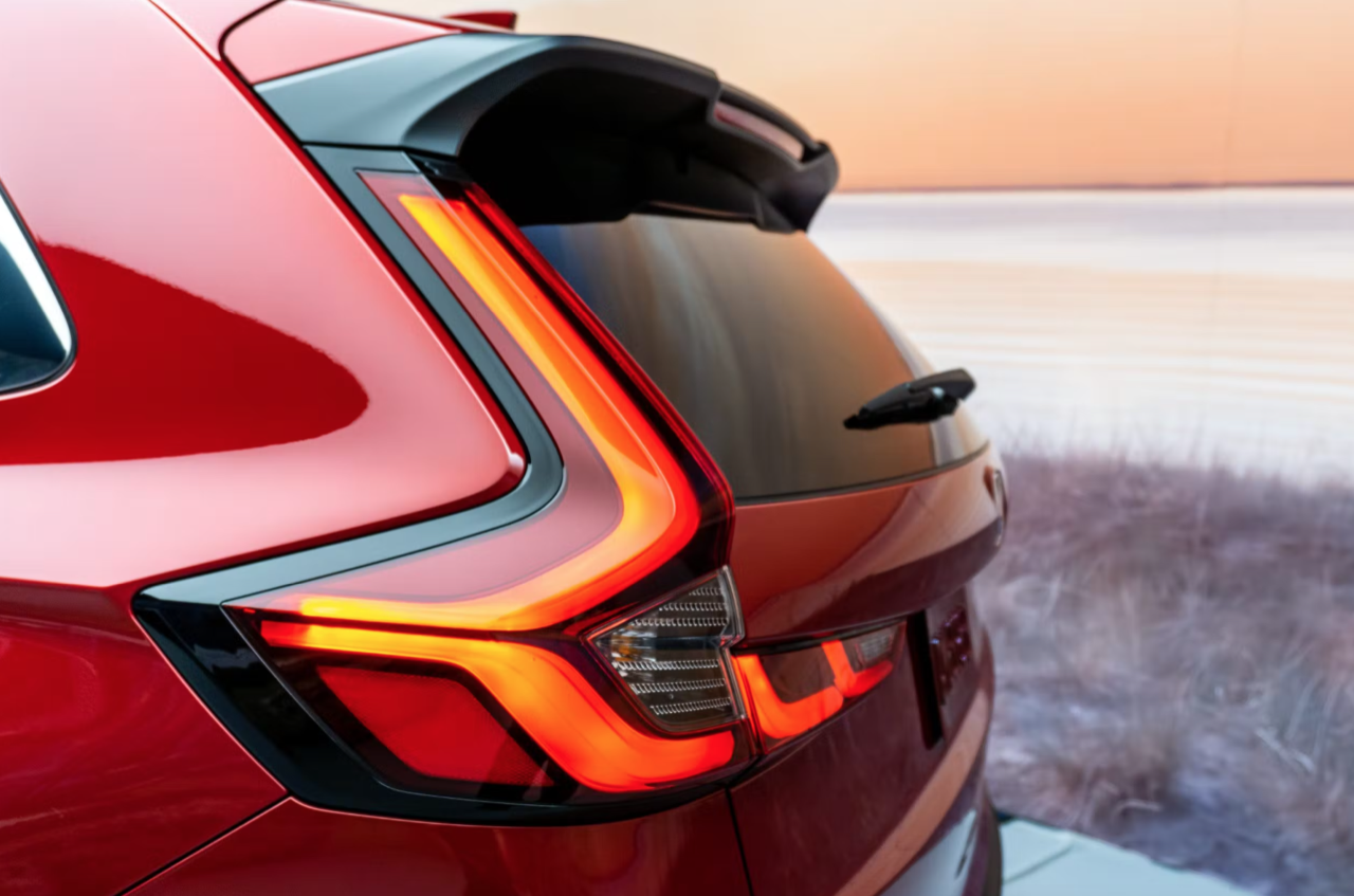 บั้นท้ายของ CR-V รุ่นปี 2023 เหมือนกับรถยนต์อเนกประสงค์ SUV ของ Volvo ด้วยการออกแบบไฟท้ายใหม่รูปตัว L มีแถบนำแสงรูปตัว L อยู่ตรงส่วนล่าง การเปลี่ยนแปลงที่สำคัญอีกจุดหนึ่งก็คือ การปรับตำแหน่งของพื้นที่ป้ายทะเบียน จากด้านล่างของฝาท้าย ขึ้นมาอยู่ที่ด้านบน การหลีกเลี่ยงการใช้งานวัสดุตกแต่งฝาท้ายแบบโครเมียมเป็นการเปลี่ยนแปลงที่ดี เนื่องจากทำให้ส่วนท้ายดูสะอาดตา ฝาท้ายของ New CR-V เปิดปิดด้วยไฟฟ้าพร้อมเซนเซอร์ ภาพอย่างเป็นทางการทำให้เห็นถึงรูปลักษณ์ที่ดีขึ้นในการออกแบบไฟหน้า ไฟท้าย กันชน กระจังหน้า และฝาท้ายของรถรุ่นใหม่ที่จะขายในอเมริกาและจีนก่อนใคร CR-V เจเนอเรชันถัดไปจะมีขนาดใหญ่กว่าโฉมปัจจุบัน CR-V โฉมปัจจุบันมีความยาว 4,621 มิลลิเมตร กว้าง 1,855 มิลลิเมตร สูง 1,690 มิลลิเมตร ระยะฐานล้อยาว 2,661 มิลลิเมตร