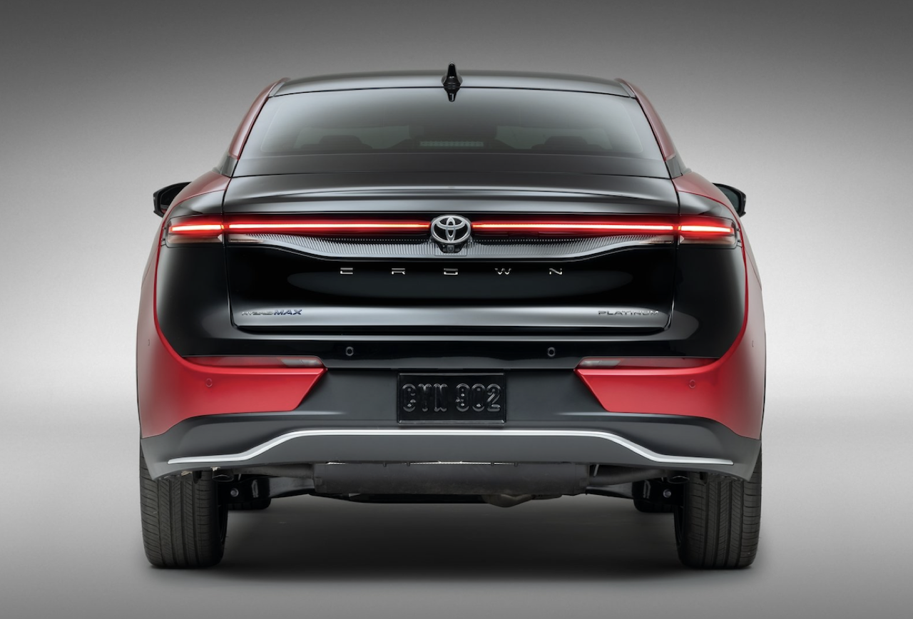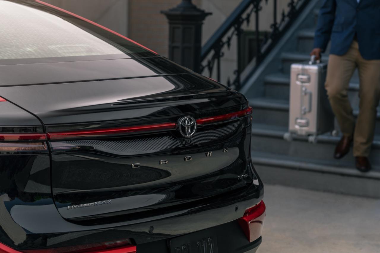 Toyota Crown ซาลูน 4 ประตู มีให้เลือกสามรุ่นคือ รุ่น XLE รุ่น Limited และ Platinum พร้อมระบบส่งกำลังไฮบริดสองแบบ: HYBRID MAX กับ Toyota Hybrid System (THS) เจเนอเรชันที่สี่ ระบบส่งกำลัง HYBRID MAX ประจำการอยู่ใน Crown Platinum เท่านั้น นี่คือระบบไฮบริดสมรรถนะสูงแบบใหม่ของ Toyota กำลังสูงสุดประมาณ 340 แรงม้า ติดตั้งเครื่องยนต์เทอร์โบชาร์จ เบนซินแถวเรียงสี่สูบ ความจุ 2.4 ลิตร เกียร์อัตโนมัติ 6 สปีด (น่าจะ 8 สปีดได้แล้ว) Toyota เคลมว่า เครื่อง HYBRID MAX สร้างแรงบิดที่ทรงพลังในรอบต่ำ เพื่อมอบอารมณ์การตอบสนองแบบสปอร์ต รวมถึงการประหยัดเชื้อเพลิงเมื่อขับในเมือง/ทางหลวง ด้วยความเร็วคงที่