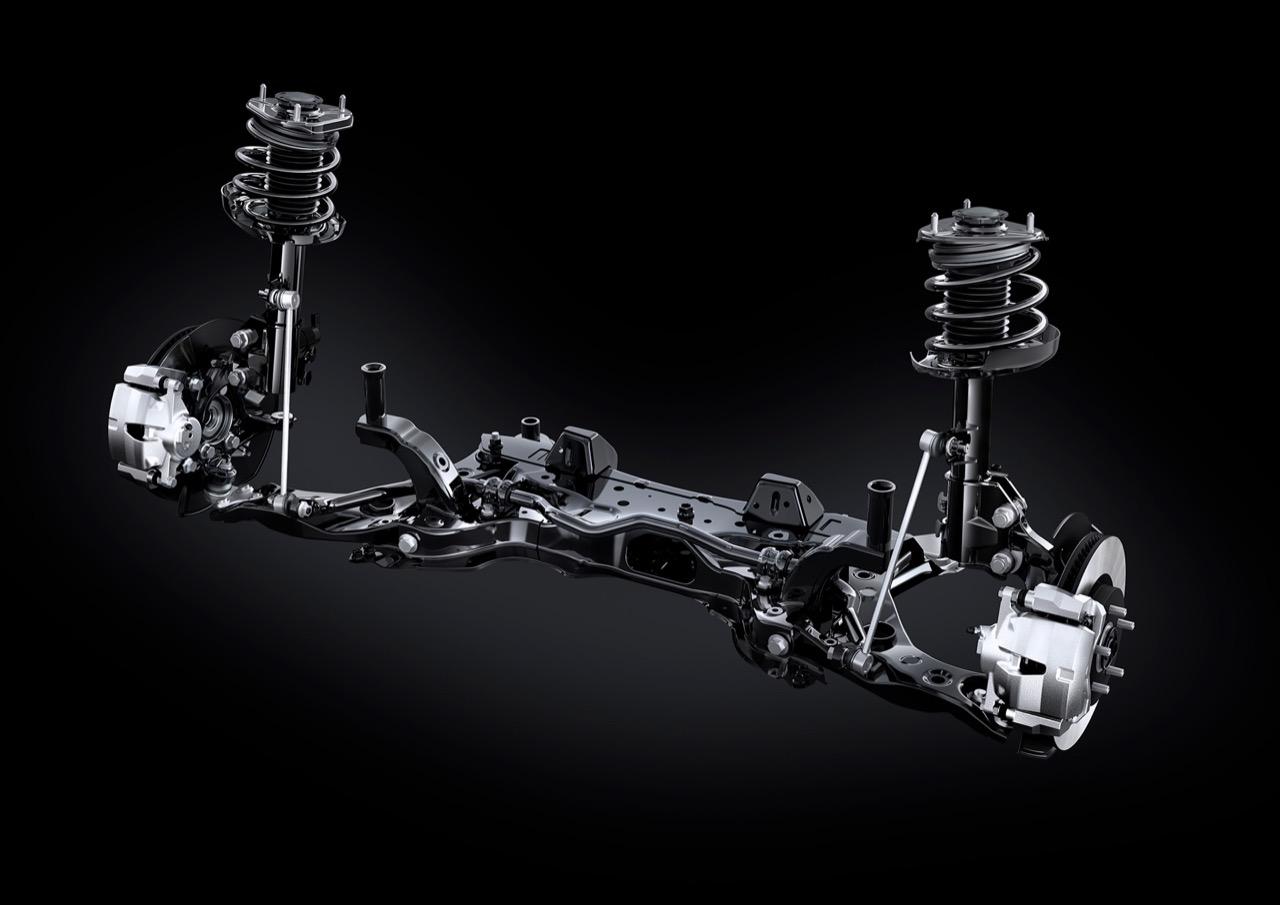 วิศวกรของ Toyota ปรับแต่งระบบกันสะเทือนสำหรับ Crown เพื่อทำให้รถมีความคล่องตัวและการขับขี่ที่ผ่อนคลาย ส่วนประกอบของระบบกันสะเทือนด้านหน้าแบบสตรัท (MacPherson) และจุดยึดใหม่ในการติดตั้งแรคพวงมาลัยไฟฟ้า ช่วยให้บังคับเลี้ยวได้ตรงและชัดเจนมากยิ่งขึ้น ช่วยลดเสียงรบกวนและแรงสั่นสะเทือน ระบบกันสะเทือนหลังแบบ multi-link ที่พัฒนาขึ้นใหม่ให้มีความแข็งแกร่งสูง ก้านยึดช่วงล่างด้านหลังถูกปรับให้เหมาะสม เพื่อลดค่าการเปลี่ยนแปลงในแนวตั้ง ทำให้เกิดความรู้สึกในการขับขี่ที่ราบเรียบ