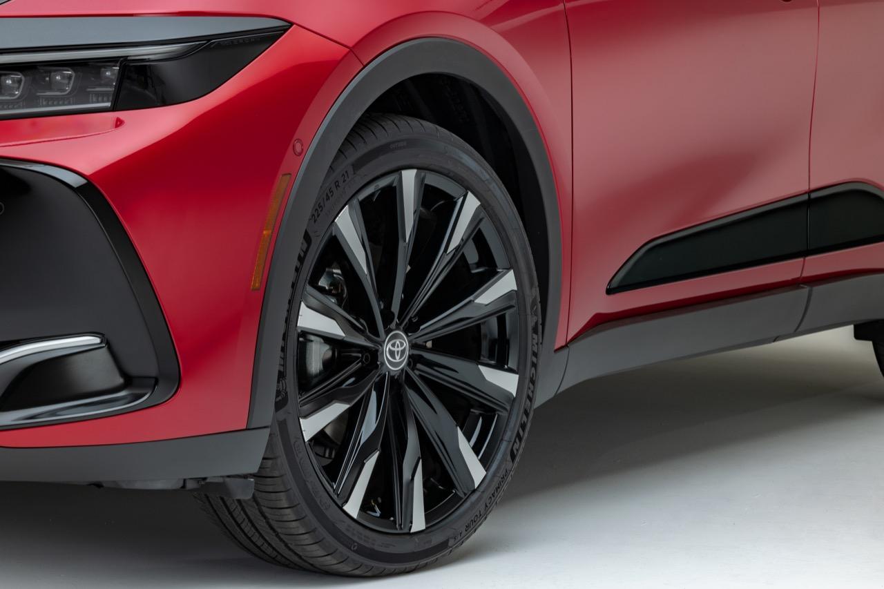 ระบบเบรกที่ควบคุมด้วยระบบอิเล็กทรอนิกส์ Active Cornering Assist (ACA) ซึ่งควบคุมการทรงตัว เพื่อลดอาการอันเดอร์สเตียร์ในบางสถานการณ์ (หน้าดื้อโค้ง) ยางและล้อที่มีเส้นผ่านศูนย์กลางขนาดใหญ่ ทำให้ Toyota Crown มีสไตล์ที่ใกล้เคียงกับรถอเนกประสงค์ สำหรับ Crown รุ่น XLE และรุ่น Limited ใช้ล้ออัลลอยสีทูโทน ขนาด 19 นิ้ว รุ่น Limited ใสล้ออัลลอยสีดำ แบบ 10 ก้าน ขนาด 21 นิ้ว สำหรับแพ็กเกจ Advanced Tech รุ่น Platinum มาพร้อมกับล้ออัลลอยขนาด 21 นิ้ว แบบ 10 ก้านขนาด 21 นิ้ว ตกแต่งด้วยสีดำ