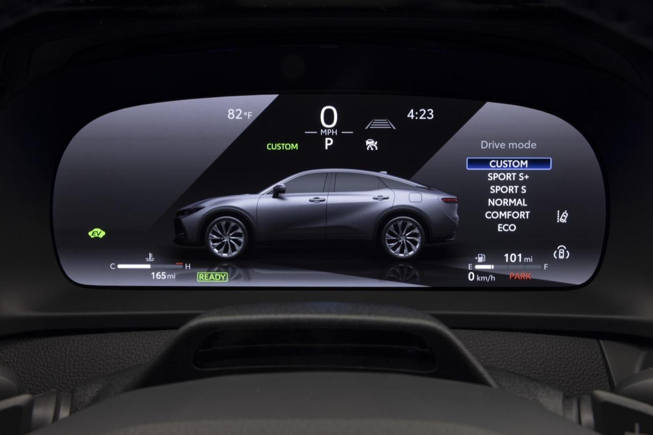 เครื่องยนต์ไฮบริด THS 2.5 ลิตร มีโหมดการขับขี่สามโหมด เช่น NORMAL, ECO และ SPORT ช่วยปรับแต่งบุคลิกภาพและการตอบสนอง สมรรถนะของ Toyota Crown ในโหมด SPORT เพิ่มการตอบสนองของลิ้นปีกผีเสื้อให้รวดเร็วขึ้น ทำให้การขับรถไฮบริดยุคใหม่สนุกยิ่งขึ้น โหมด ECO ปรับเปลี่ยนการตอบสนองของคันเร่ง และตรรกะของการลดมลพิษเพื่อสิ่งแวดล้อม ช่วยให้ผู้ขับมุ่งไปที่การเพิ่มระยะทางสูงสุดจากเชื้อเพลิงและแบตเตอรี่ ในขณะที่โหมด NORMAL เหมาะสำหรับการขับขี่ใช้งานในชีวิตประจำวัน นอกจากนี้ โหมด EV ยังช่วยให้ขับขี่ด้วยไฟฟ้าในย่านความเร็วต่ำบนระยะทางสั้นๆ
