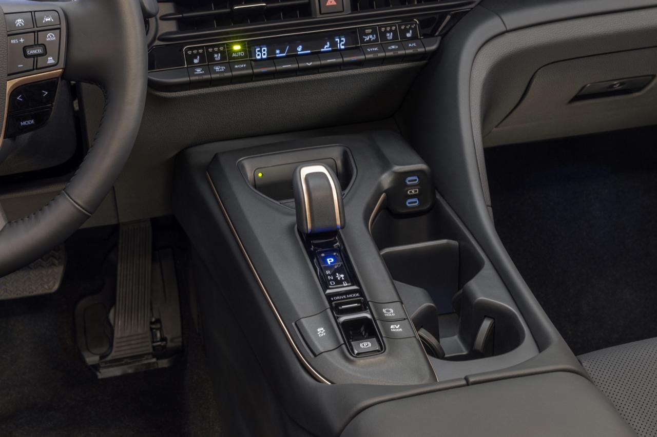 เกียร์ eCVT ใน Crown XLE และ Limited ใช้ระบบ shift-by-wire เปลี่ยนเกียร์ด้วยสมองกลอิเล็กทรอนิกส์ ซอฟต์แวร์สั่งงานที่ชาญฉลาด จับคู่กับ transaxle ที่ด้านหน้าและด้านหลัง ระบบไฮบริด THS มีตัวเลขสิ้นเปลืองเชื้อเพลิงต่ำ มีเสียงการทำงานที่เบาตามสไตล์รถยนต์ไฮบริด อัตราทดเกียร์ที่ปรับให้เหมาะสมรวมถึงระบบเบรกสะสมพลังงาน regenerative braking ช่วยทำให้ประหยัดเชื้อเพลิง