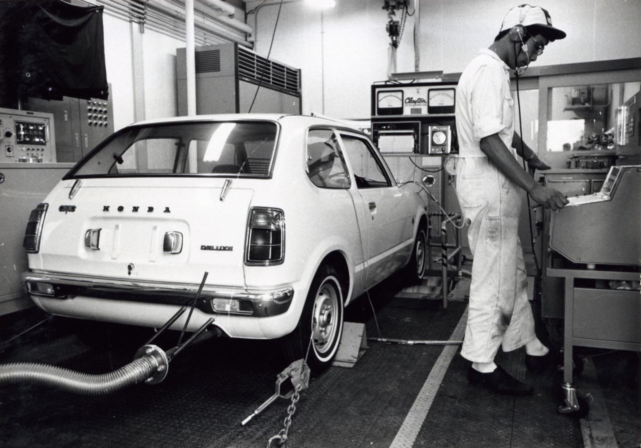 Civic เจเนอเรชันที่ 1 นำเสนอเครื่องยนต์ CVCC (Compound Vortex Controlled Combustion) ซึ่งเป็นรุ่นแรกที่ผ่านมาตรฐานกฎหมายควบคุมมลพิษไอเสียที่เข้มงวดที่สุดในสหรัฐอเมริกา (Muskie Act) ที่เป็นมิตรต่อสิ่งแวดล้อมและประหยัดน้ำมันมากที่สุด