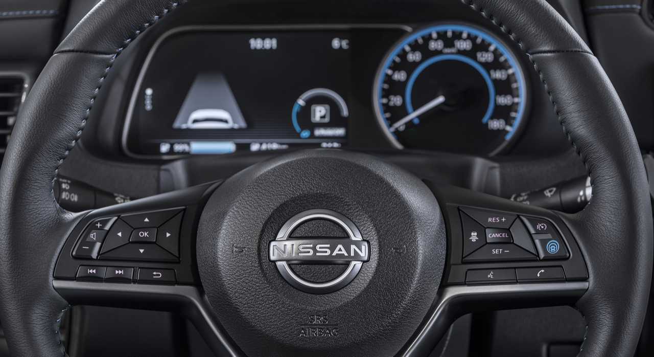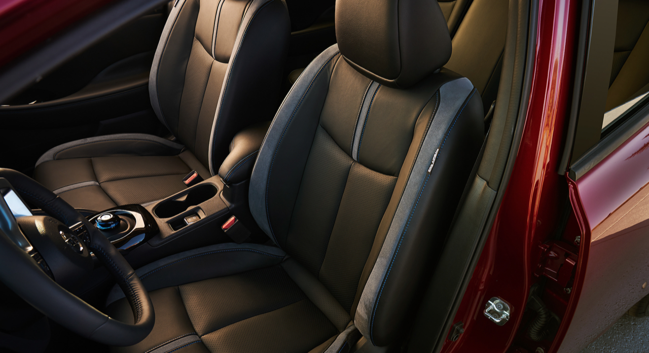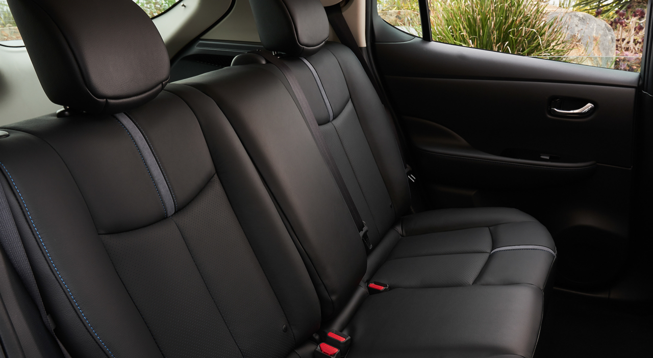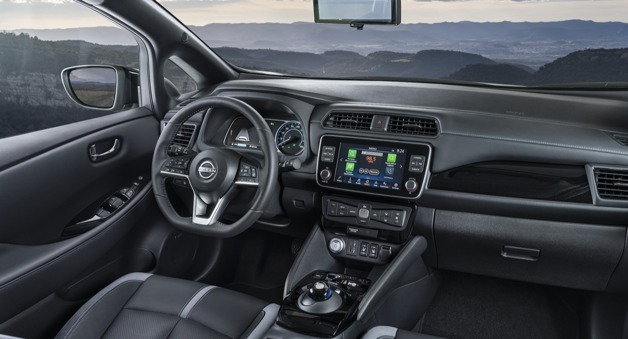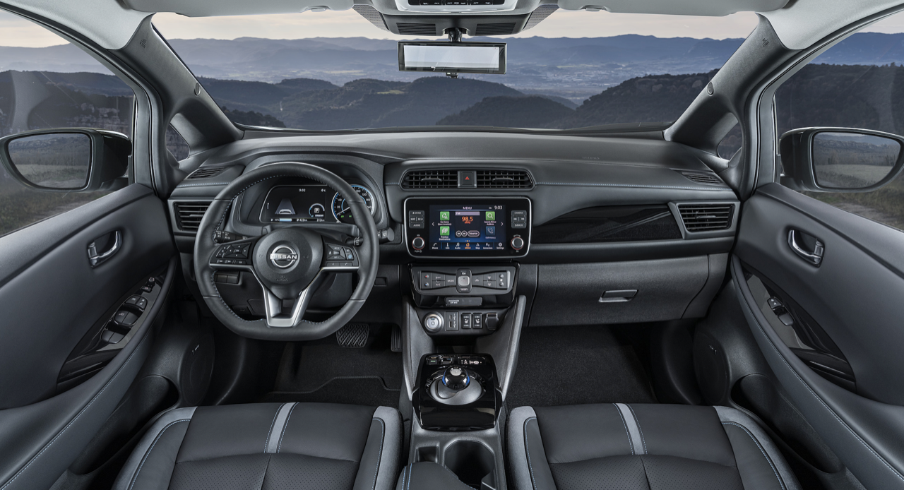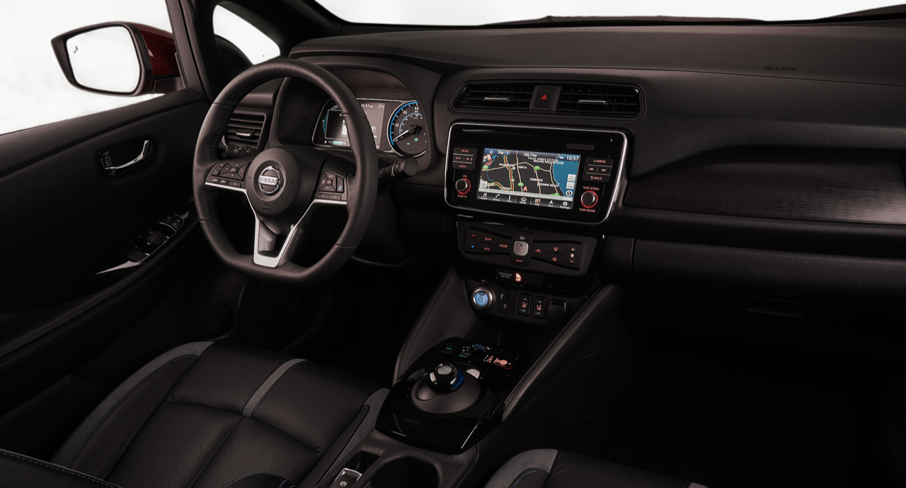 ห้องโดยสารของรถ Nissan ราคา 1.9 ล้านบาทคันนี้อุดมไปด้วยพลาสติกเกรดกลางๆ คล้ายห้องโดยสารของ Nissan Note ทำให้รู้สึกไม่ค่อยจะคุ้มกับเงินที่ต้องจ่ายออกไปเกือบสองล้านบาท แดชบอร์ดคอนโซลขึ้นรูปจากพลาสติก พวงมาลัยสามก้านที่พบเห็นได้ทั่วไปในรถยนต์ Nissan ยุคใหม่ เบาะคู่หน้ายังใช้การปรับด้วยมือแทนที่จะเป็นเบาะไฟฟ้าให้สมกับราคาค่าตัว ทุกสิ่งทุกอย่างของงานตกแต่งภายในดูธรรมดาเกินไปสำหรับรถยนต์ที่มีค่าตัวสูงขนาดนี้ เบาะหลังนั่งโดยสารได้อย่างสบายก้นเนื่องจากการออกแบบพื้นที่วางเท้าและพื้นที่เหนือศีรษะที่มากพอสมควร ซุ้มเกียร์หน้าตาออกในแนวอวกาศ ใช้หัวเกียร์ทรงกลมกุดๆ สั้นๆ เป็นระบบเกียร์แบบไฟฟ้าที่ใช้การโยกไปมาคล้ายๆ กับจอยสติ๊ก สวิตช์ e-Paddle ติดตั้งอยู่ด้านบนของซุ้มเกียร์ พร้อมด้วยสวิตช์ ECO เพื่อการขับที่เน้นการประหยัดพลังไฟในแบตเตอรี่