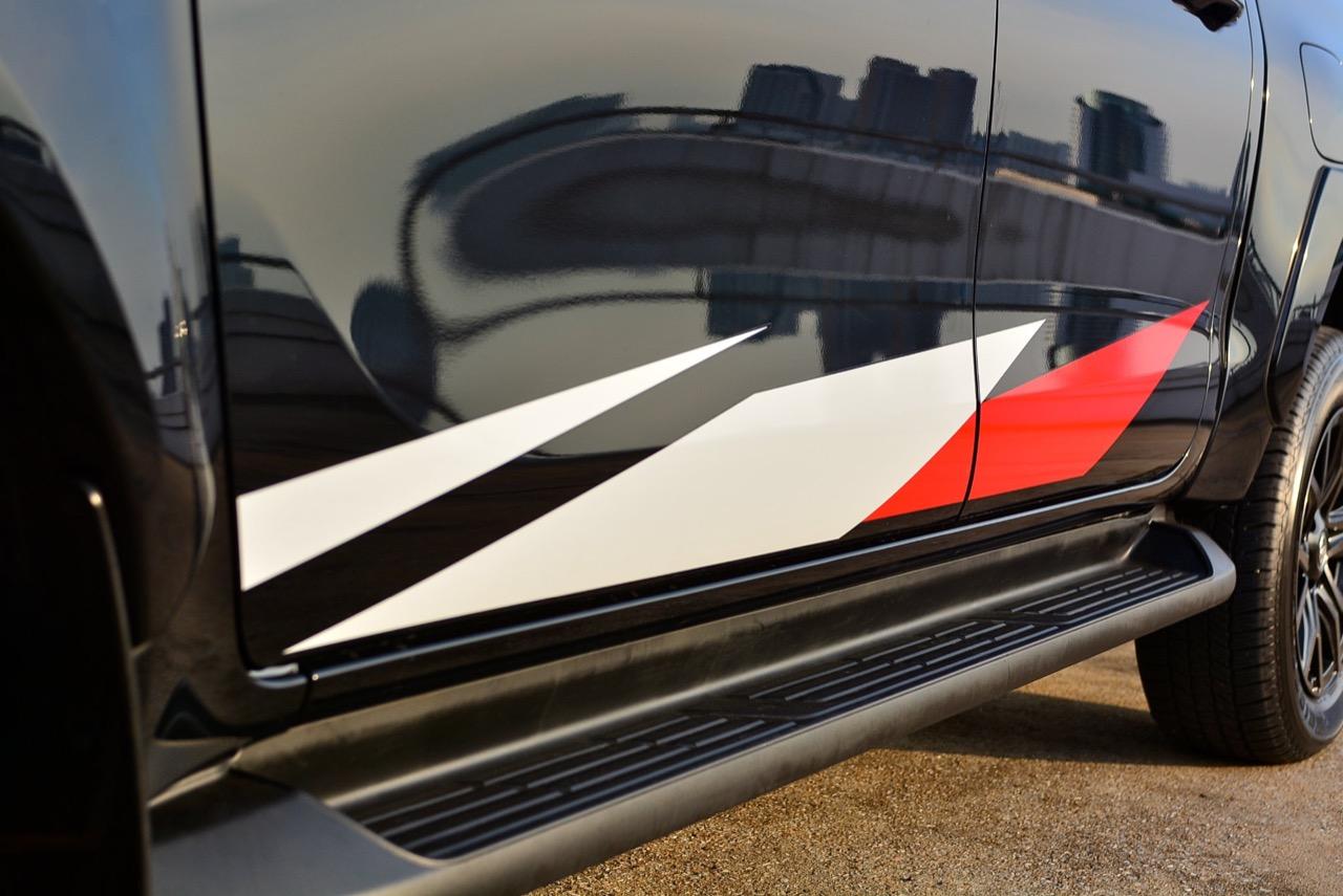สัญลักษณ์ Hilux สีดำที่ข้างประตูหน้า
