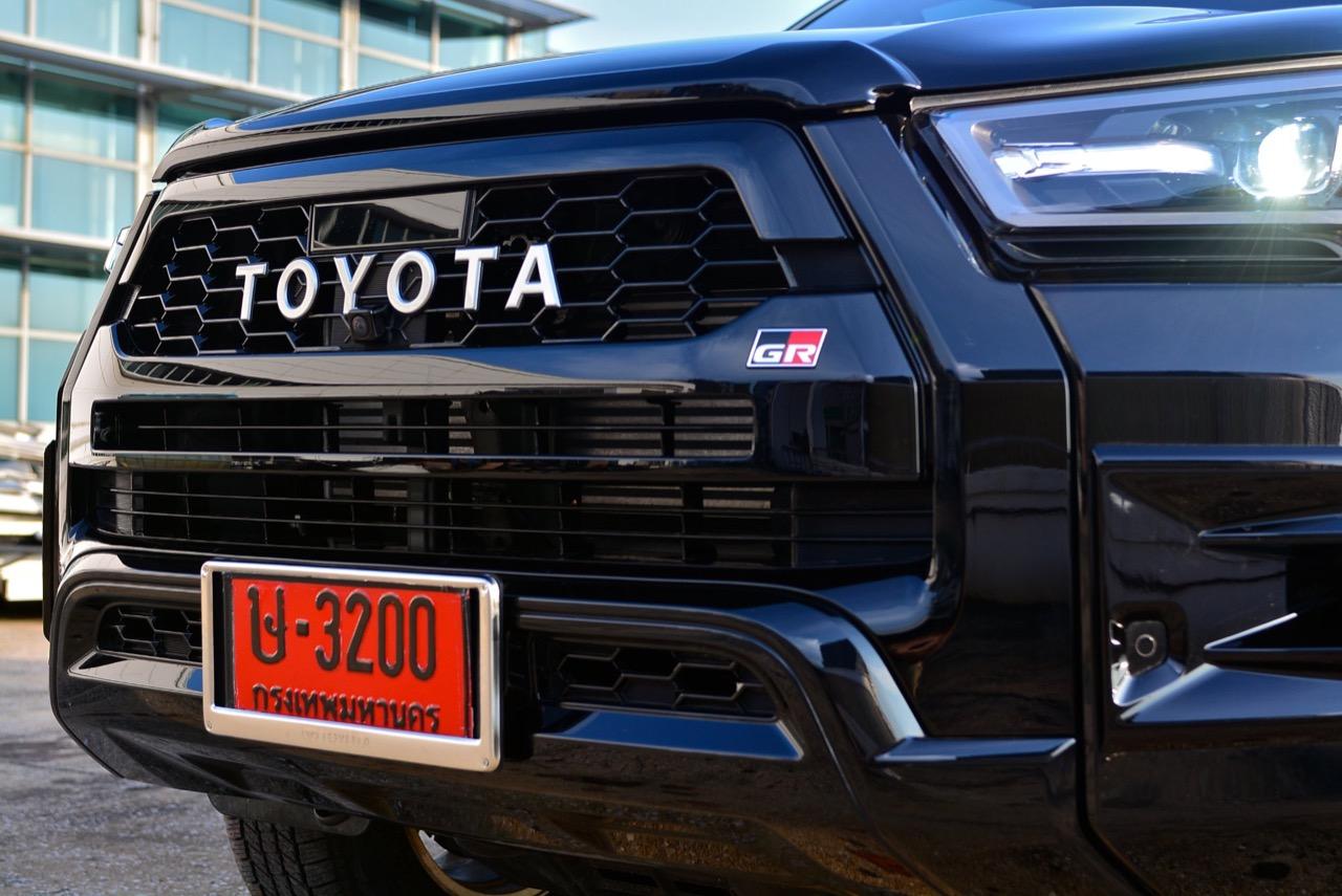 กระจังหน้าสีดำเมทัลลิค และคิ้วกระจังหน้าพร้อมสัญลักษณ์ Hilux