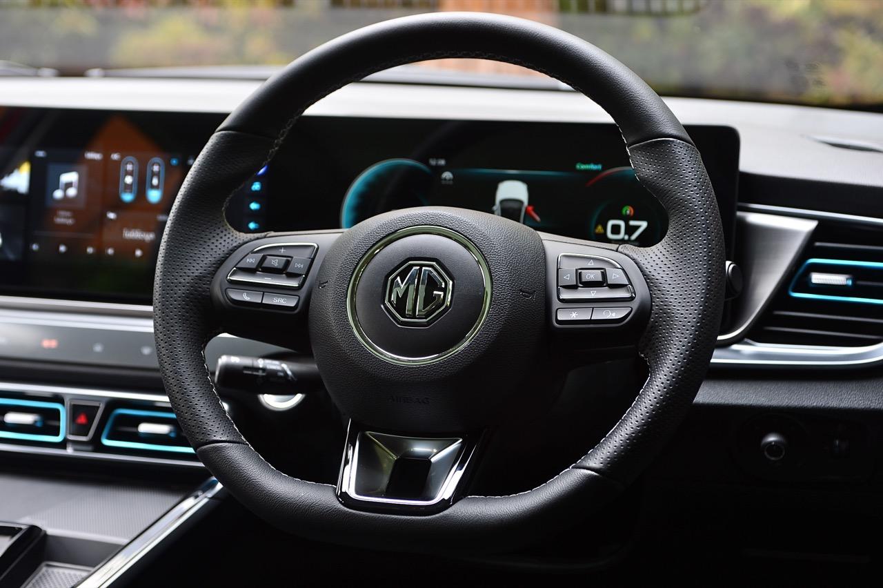 NEW MG VS HEV ออกแบบด้วยแนวคิด ABSOLUTE กระจังหน้า Electrified Matrix Grille Design ไฟหน้าแบบ LED Projector เปิด-ปิดได้อัตโนมัติ พร้อมกับไฟส่องสว่างสำหรับขับขี่เวลากลางวัน (DAYTIME RUNNING LIGHT) ไฟท้าย LED ล้ออัลลอย 17 นิ้ว มี AERO WHEEL COVER ช่วยลดแรงต้านลม
