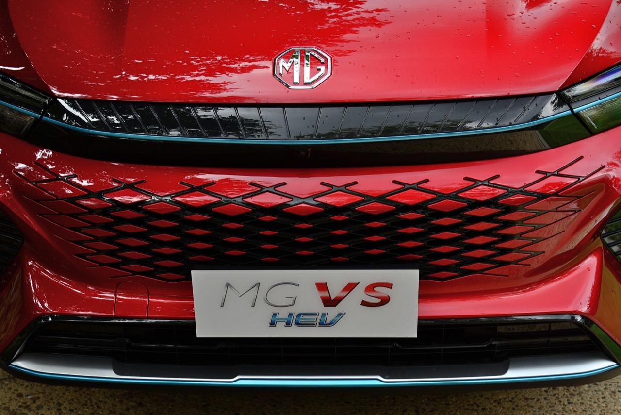 New MG VS HEV มีรูปลักษณ์ท่ีใกล้เคียงกับ MG ZS แต่มีหน้าตาที่ทันสมัย จากไฟหน้าและกระจังหน้าทรงสี่เหลี่ยมผืนผ้าที่เชื่อมต่อกันทั้งสองข้าง ไฟหน้า LED และไฟหรี่กลางวัน LED Daytime Running Light มีการใส่สีฟ้าลงไปในชิ้นงานของด้านในชุดไฟ ซึ่งมักจะเป็นสไตล์การตกแต่งรูปลักษณ์ภายนอกของรถยนต์ไฮบริด กระจังหน้าทรงตาข่ายที่ดูดี ไฟตัดหมอก LED ก็ยังมีมาให้ ตัวถังด้านข้างมีเส้นนำสายตาตามรูปแบบของยานยนต์ยุคใหม่ ลากจากขอบของไฟหน้า ผ่านด้านบนของมือจับที่เปิดประตูทั้งหน้าและหลังไปจนถึงขอบของไฟท้าย แรคหลังคาสีเงิน บั้นท้ายดูคล้าย Toyota Corolla Cross ไฟท้าย LED แบบสองชิ้น กระจกบานฝาท้ายมีก้านใบปัดน้ำฝนมาให้ใช้งาน เสาอากาศแบบครีบฉลาม ล้ออัลลอยสีเงินสลับสีดำ ขอบ 17 นิ้ว ยาง michelin primacy suv ไซส์ 215/55R17 มิติตัวถังของ New MG VSMG VS มีขนาดความยาว 4,440 มิลลิเมตร กว้าง 1,810 มิลลิเมตร สูง 1,634 มิลลิเมตร ความยาวฐานล้อ 2,625 มิลลิเมตร พื้นที่เก็บสัมภาระด้านท้าย 383 เมื่อพับเบาะหลังจะเพิ่มเป็น 1,372 ลิตร ความจุถังเชื้อเพลิง 45 ลิตร ฝาท้ายทำแนวด้วยการกดเปิดฝาท้ายที่ตราสัญลักษณ์ของ MG