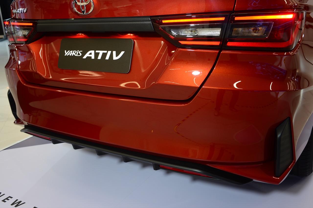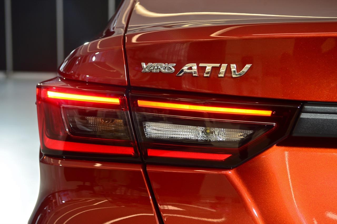 ตัวถังสไตล์ "Fastback style" ซึ่งปัจจุบันเป็นที่นิยมในรถยุโรปหลายรุ่น ออกแบบโดยคำนึงถึงระบบอากาศพลศาสตร์ ค่าสัมประสิทธิ์แรงเสียดทานอากาศ 0.284 YARIS ATIV ทุกรุ่นจะมาพร้อมไฟหน้าแบบ Full LED ล้ออัลลอย Two tone ขนาด 16 นิ้ว ไฟท้ายแบบ Full LED Light-guiding ไฟเลี้ยว Sequential